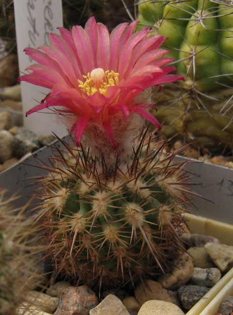 Интересно, природный гибрид с чем? Ведь растёт она в высокогорье. У Престон-Мафам в справочнике (моя настольная книга кстати), под фото написано, что цветки от жёлто-зелёных до красноватых. У них вообще интересно, что все виды неочилений, неопортерий, телоцефалы, ислайи включены в общий род Неопортерия, а пиррокактусы остались в своём ранге, также, как нотокактусы и пародии, но в нотокактусах растворились эриокактусы, бразиликактусы и виггинсии, а в пародиях включены вразилипародии. Щадящее объединение, скажем так. :)