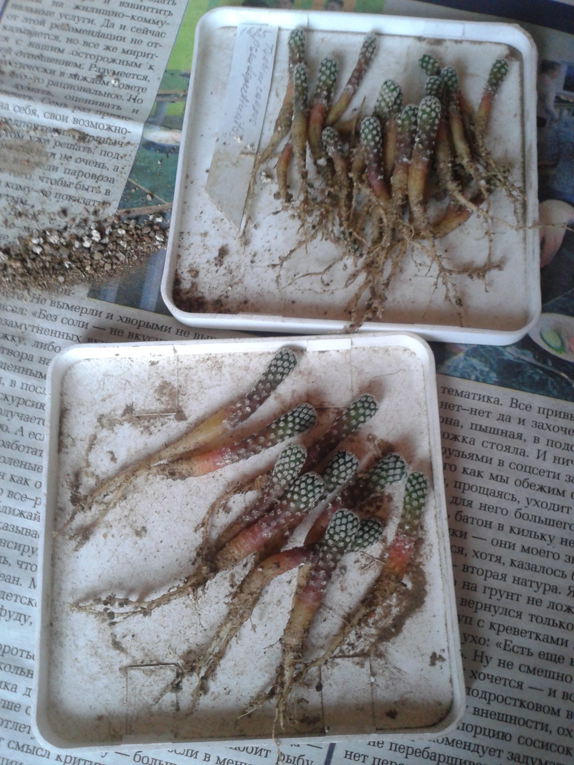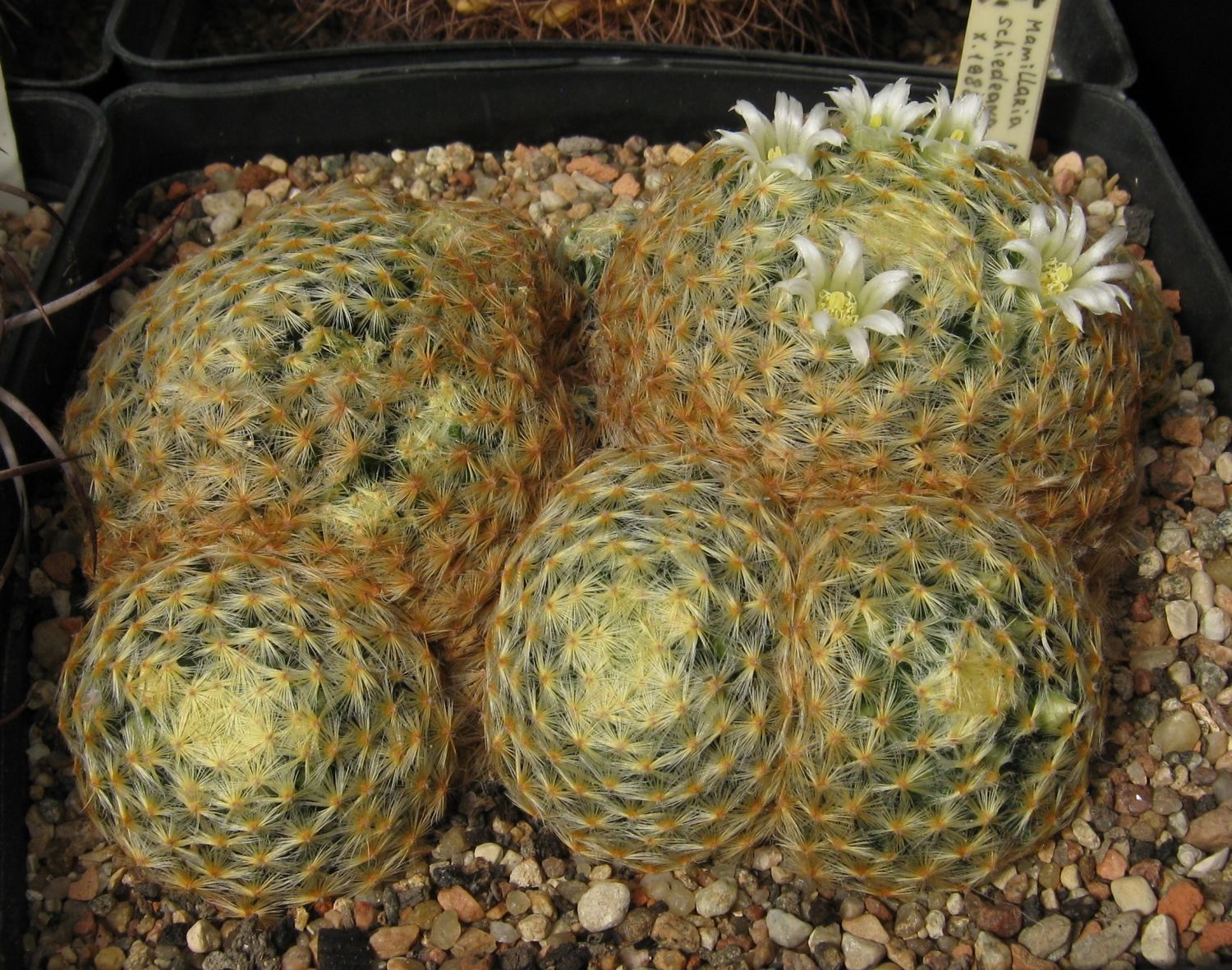 С возрастом у M.schiedeana образуется мощнейшая репа, как у лофы или ариокарпусов. Очень эффектная! Я тоже получал удовольствие от созерцания её корня. К сожалению она подмерзла и сгнила, но чудом сохранились два отростка и они успешно укоренились.