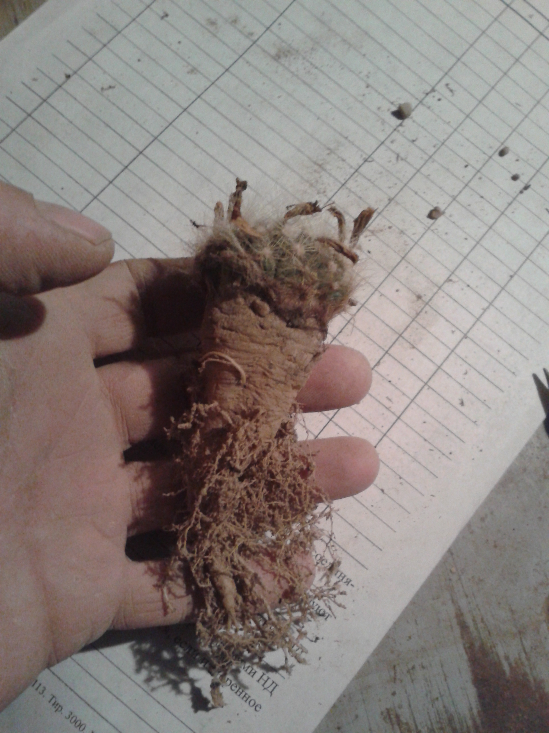 Pelecyphora strobiliformis-грунт пока не отряхнул-сейчас и посмотрим,что там за корешки