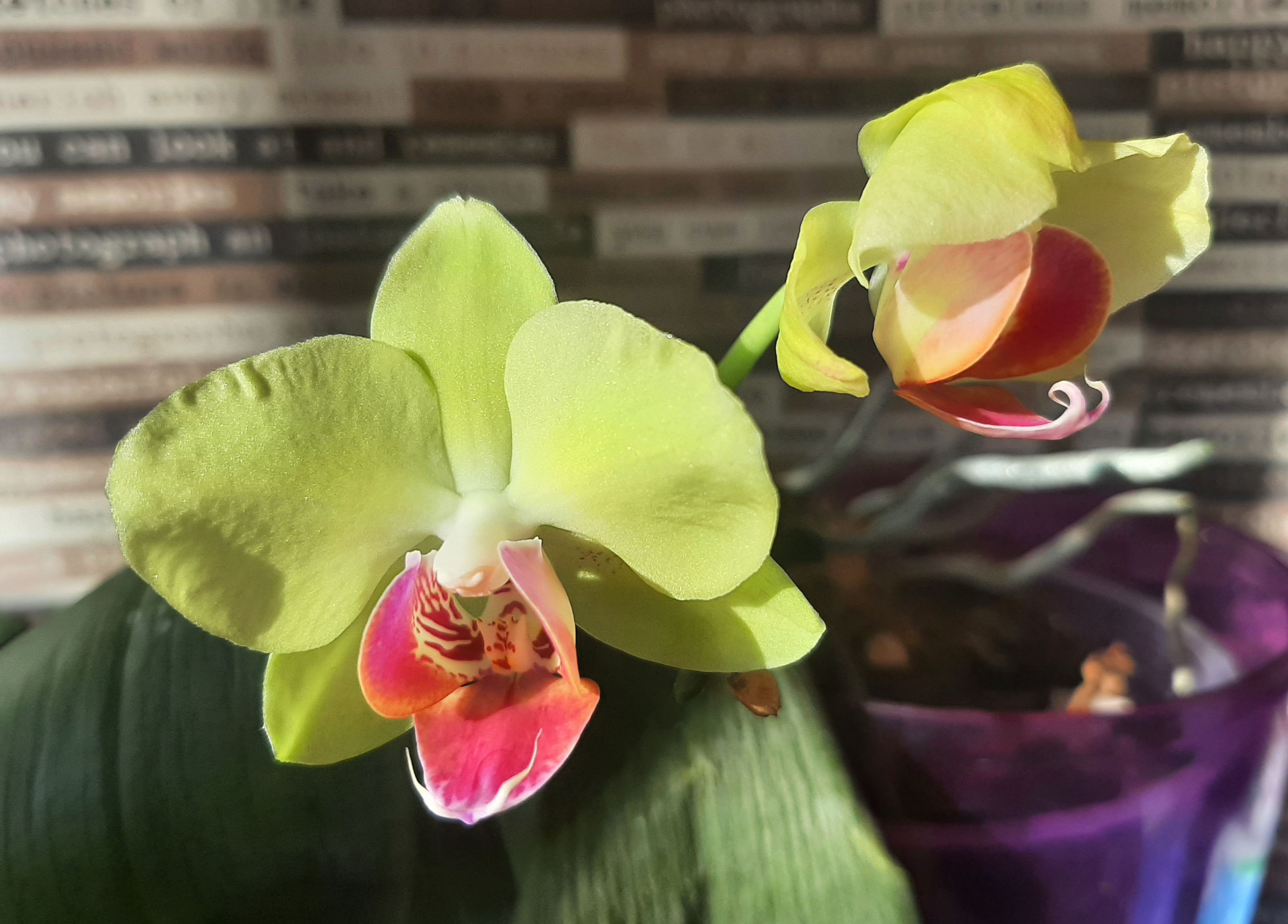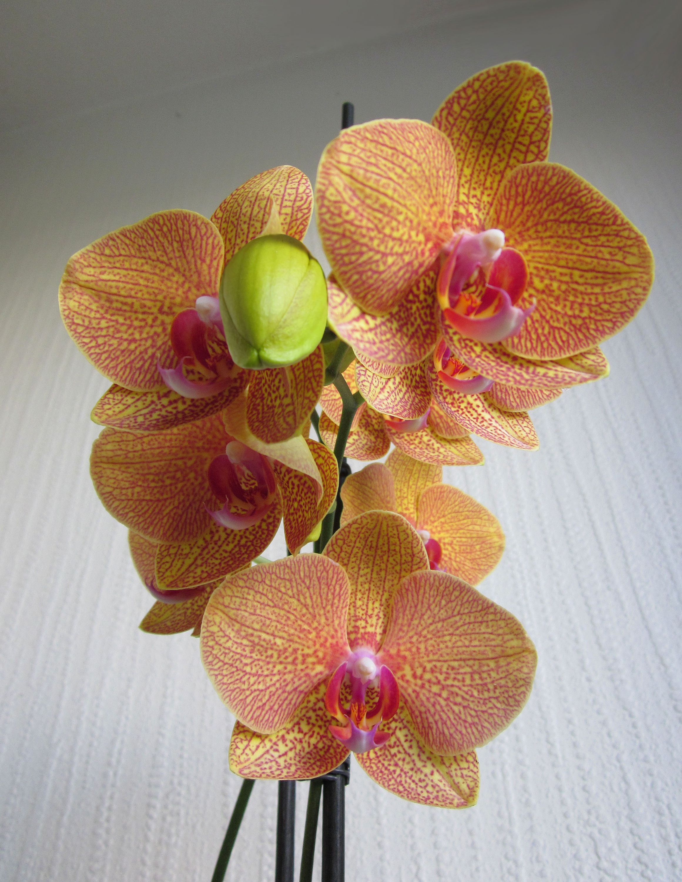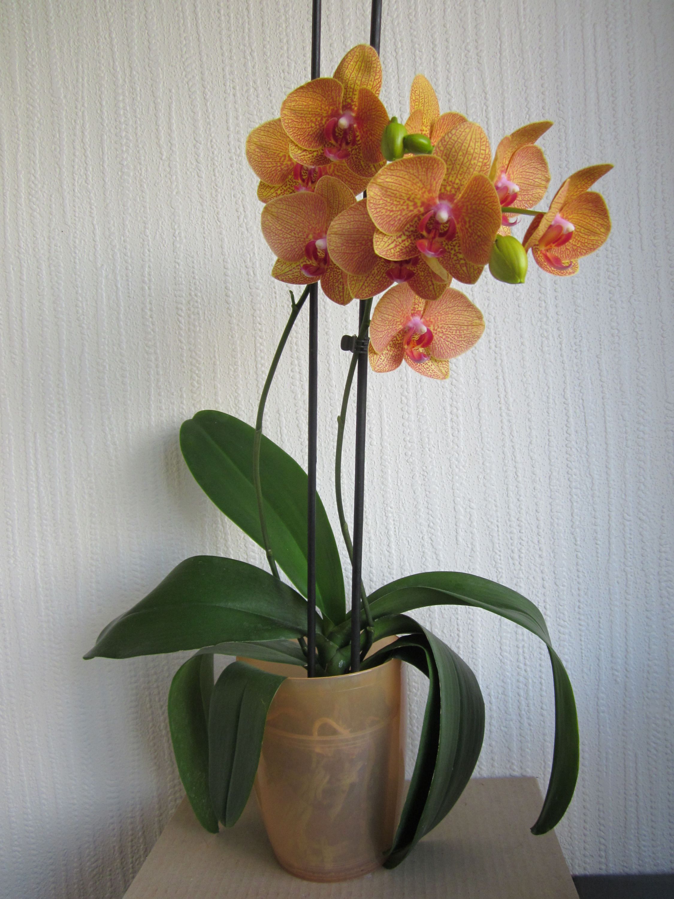 Орхидеями не увлекаюсь, но пару штук у меня есть. Год назад подарили фаленопсис довольно необычного окраса. Цветёт почти без перерыва: 4-5 месяцев цветёт, потом месяц отдыхает и снова расцветает.
