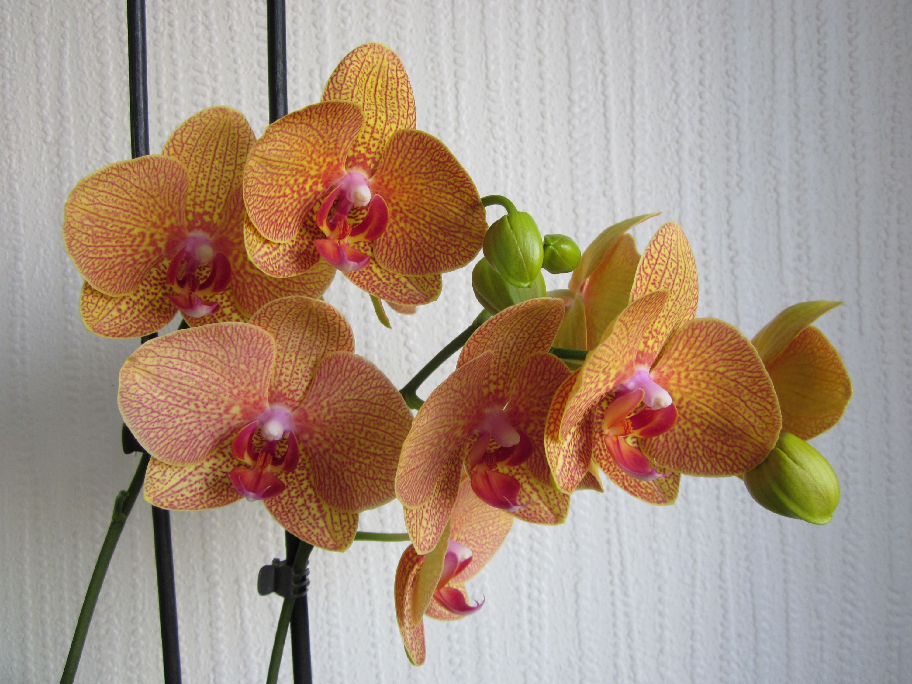 Орхидеями не увлекаюсь, но пару штук у меня есть. Год назад подарили фаленопсис довольно необычного окраса. Цветёт почти без перерыва: 4-5 месяцев цветёт, потом месяц отдыхает и снова расцветает.