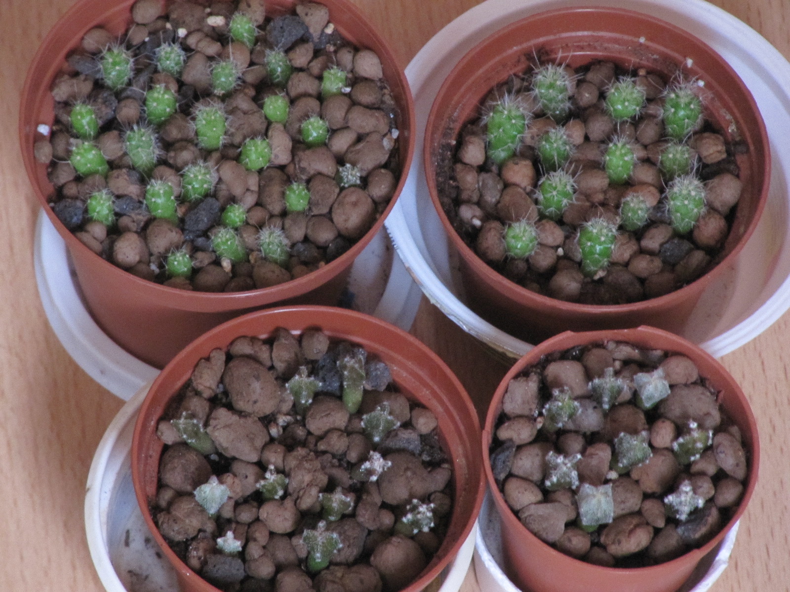 Один астрофитум козерогий, затесавшийся к эхинофоссулокактусам, к эксперименту отношения не имеет - он просто не влез в плошку с собратьями, а у эхинофоссулокактусов оставалось место. :)