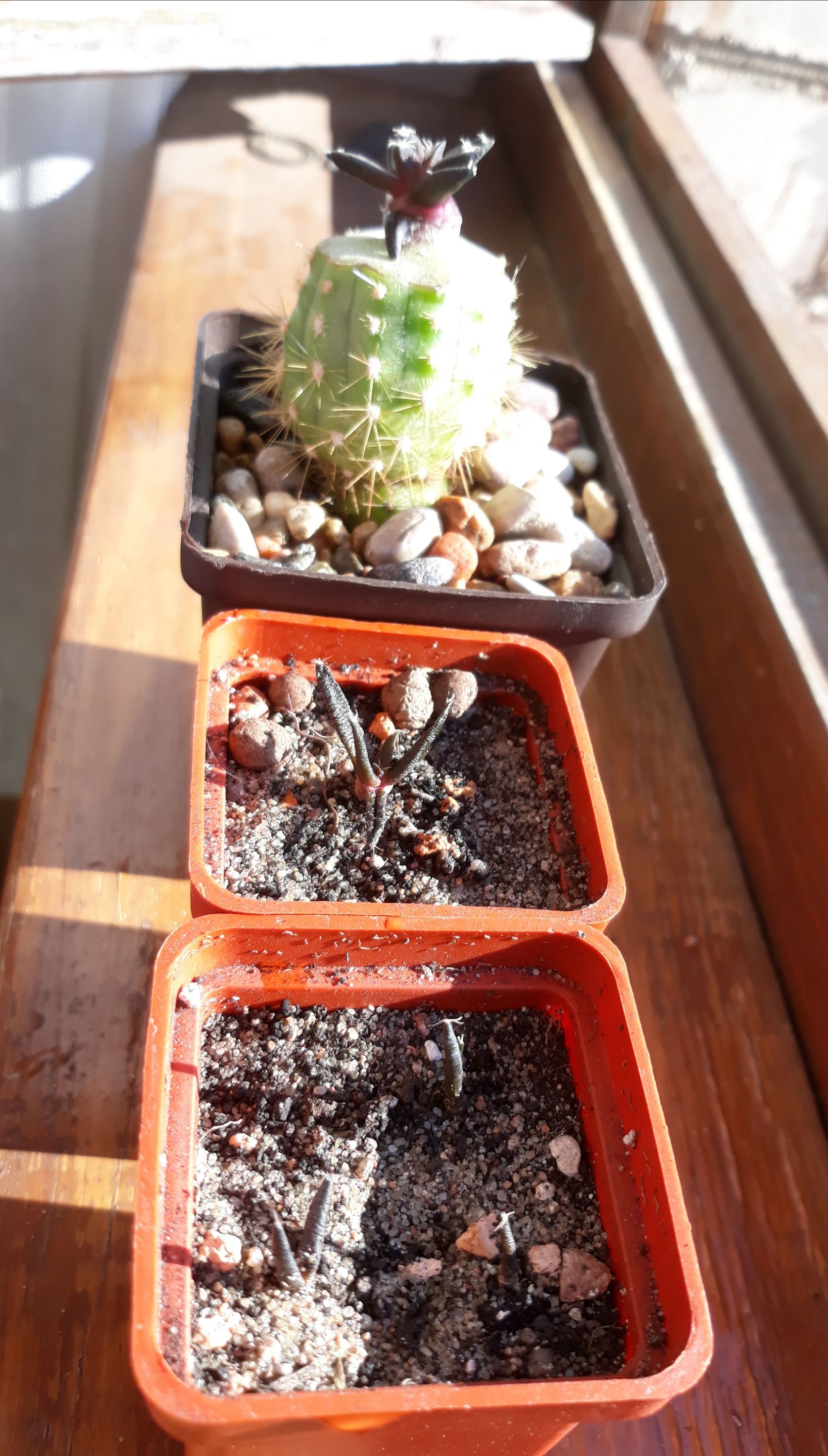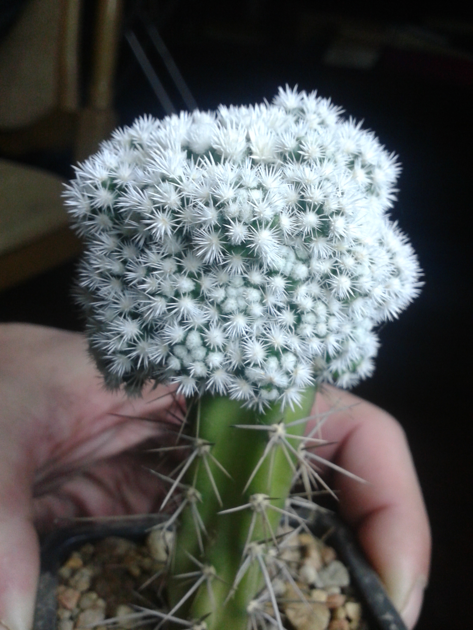 На зимовке подвой усыхать стал.Поставил в тепличку,полил-привой надулся-подвой-нет.Mammillaria gracilis Snow Cap.В то же время укоренённая детка так и осталась в 1см.