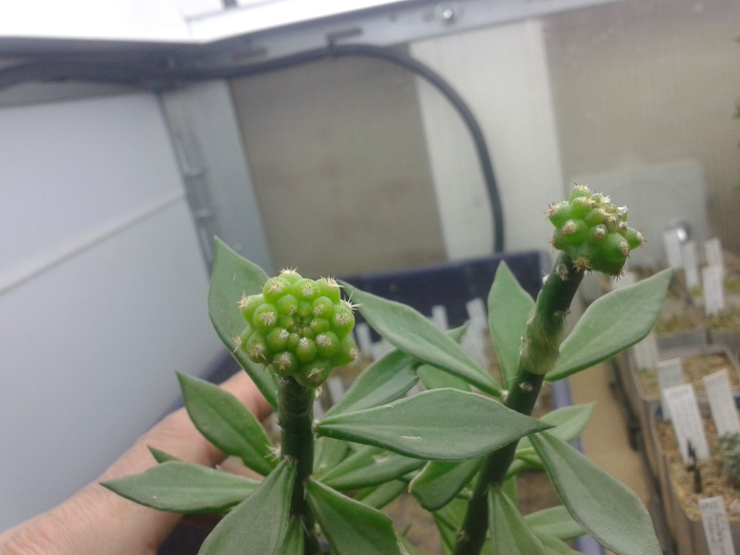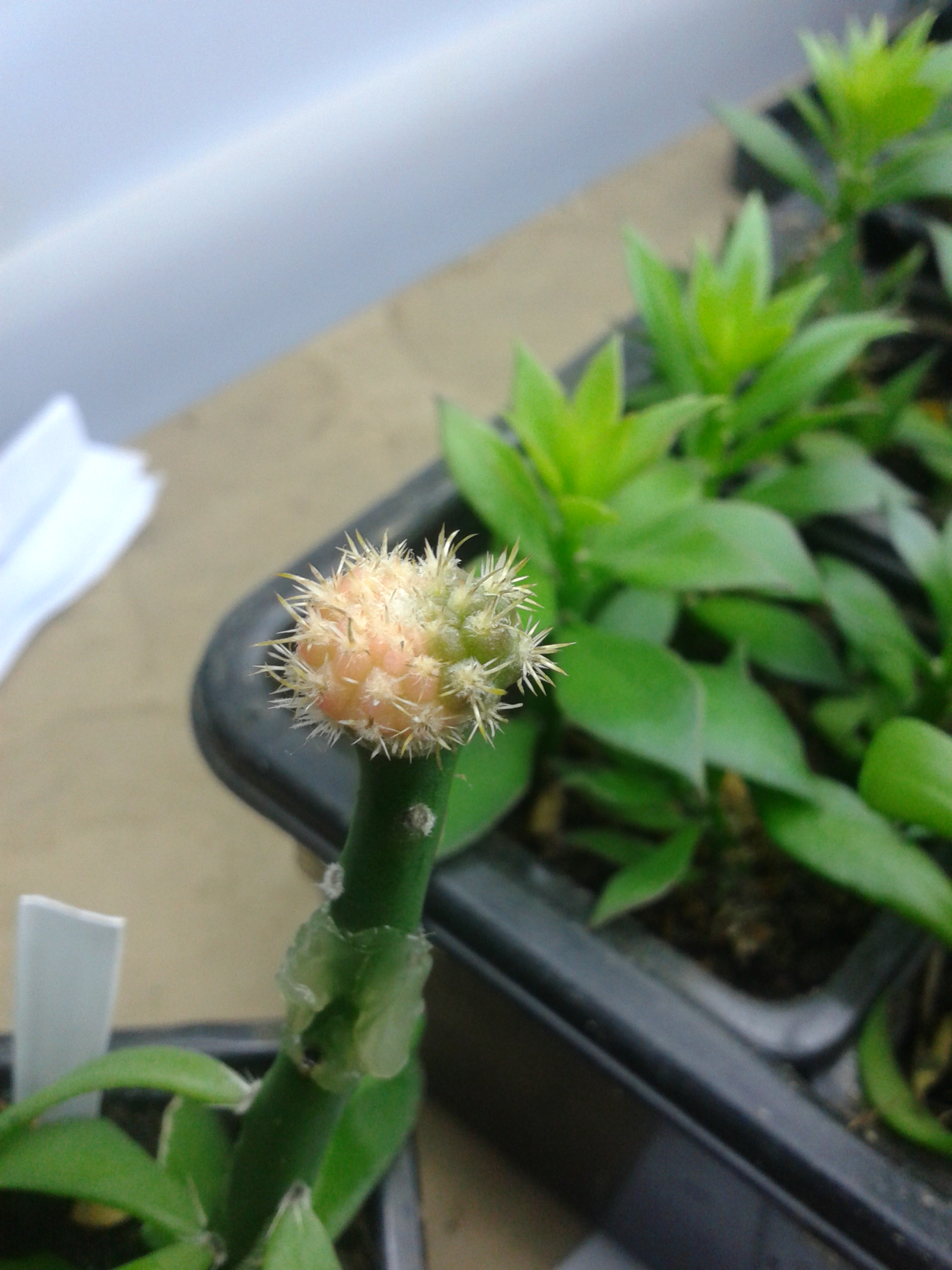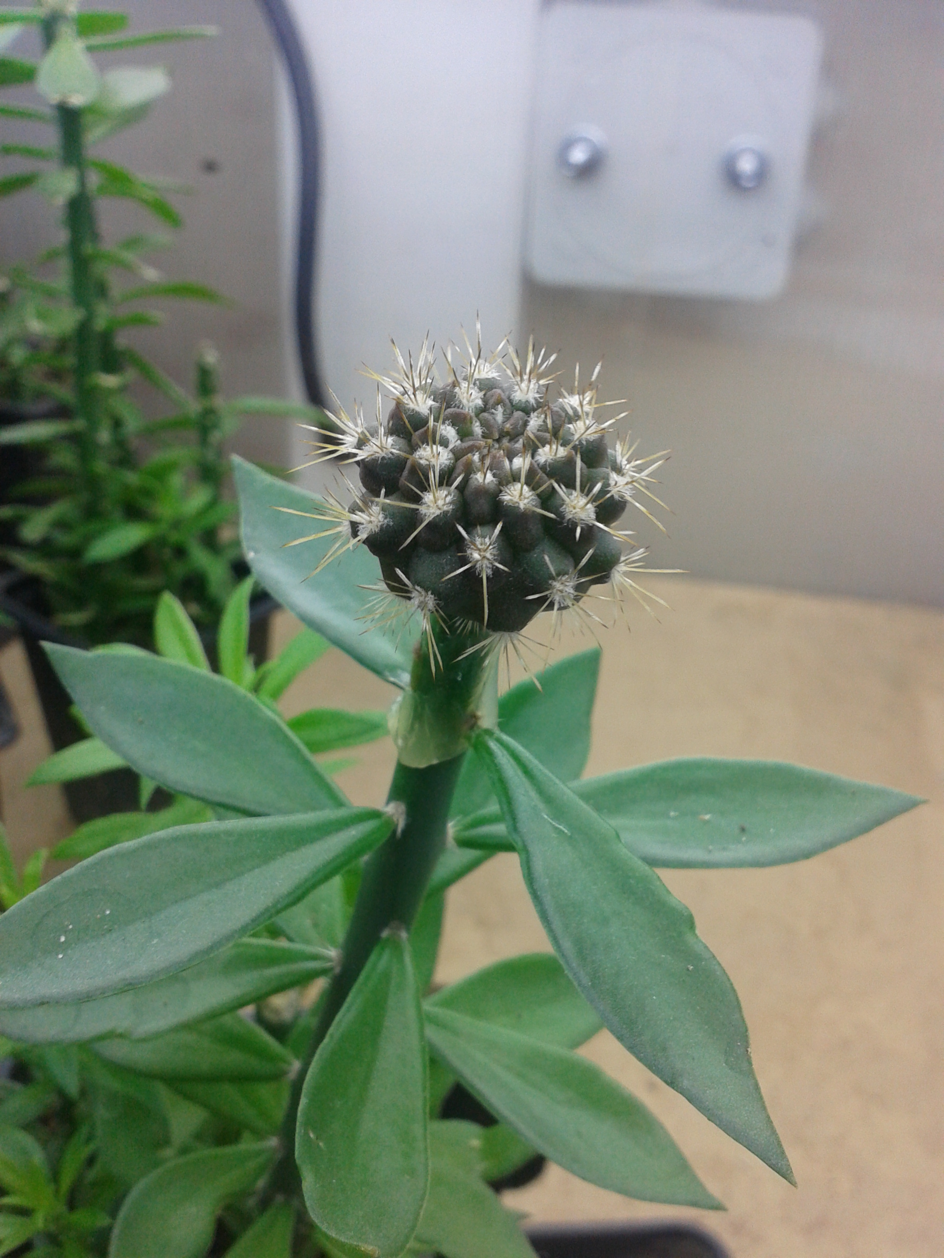Здесь скорее внутривидовая изменчивость,а так,замечательные Thelocephala duripulpa JN733 Atacama,Aqua de Luna.Имея от природы короткоцилиндрическую форму,эти растения пожалуй наиболее склонны к вытягиванию при недостатке света,особенно сильно это проявляется в конце зимы.