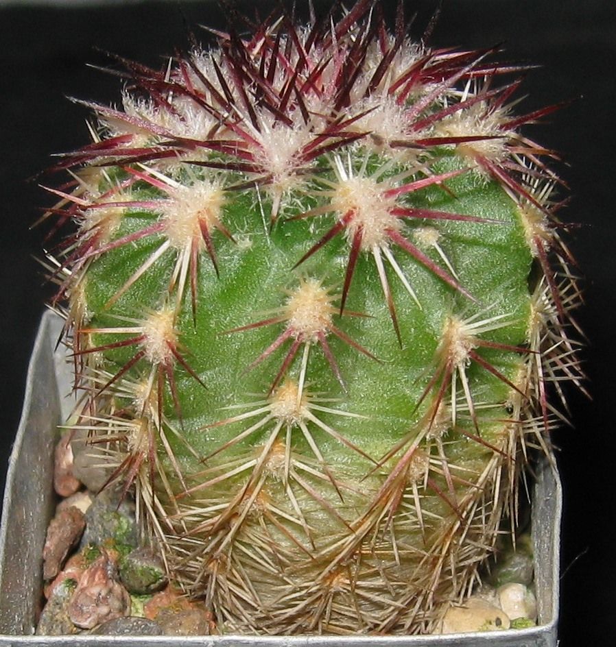 Echinocereus chloranthus SB378, mini , MG, посев 19.04.2009 года. Я получил его в 2010 году в мае месяце. Сеянец был небольшой, но проблем мне не создавал. В октябре его пересадил в маленький алюминиевый горшочек со сторонами 2.5х2.5 в чистую гравийку и до сих пор его не пересаживал. Корни повылазили снизу, а стебель сейчас где-то 2.5х3 см. Растёт медленно, но думаю был бы больше, если я делал бы своевременную пересадку.