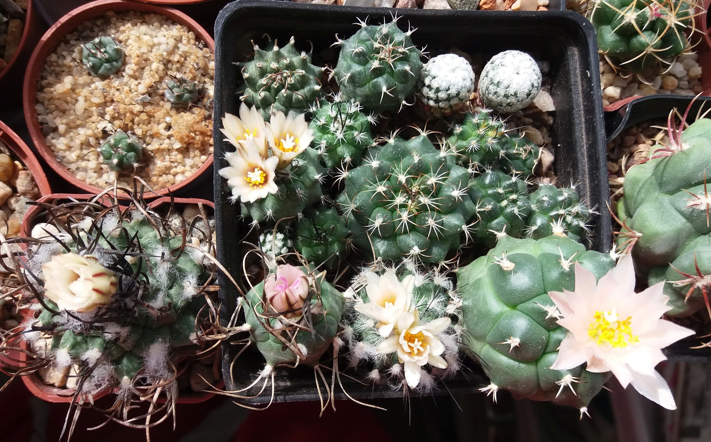 Турбиникарпусы (сверху вниз и слева направо — Turbinicarpus roseiflorus, Turbinicarpus aff. polaskii, Turbinicarpus macrochele Lau 685 Matehuala – Dr. Arroyo, NL, Turbinicarpus dickinsoniae RS 321 A, Aramberi, Turbinicarpus lophophoroides MZ 273 Rio Verde I., SLP, привет уважаемой NadyaZ!)