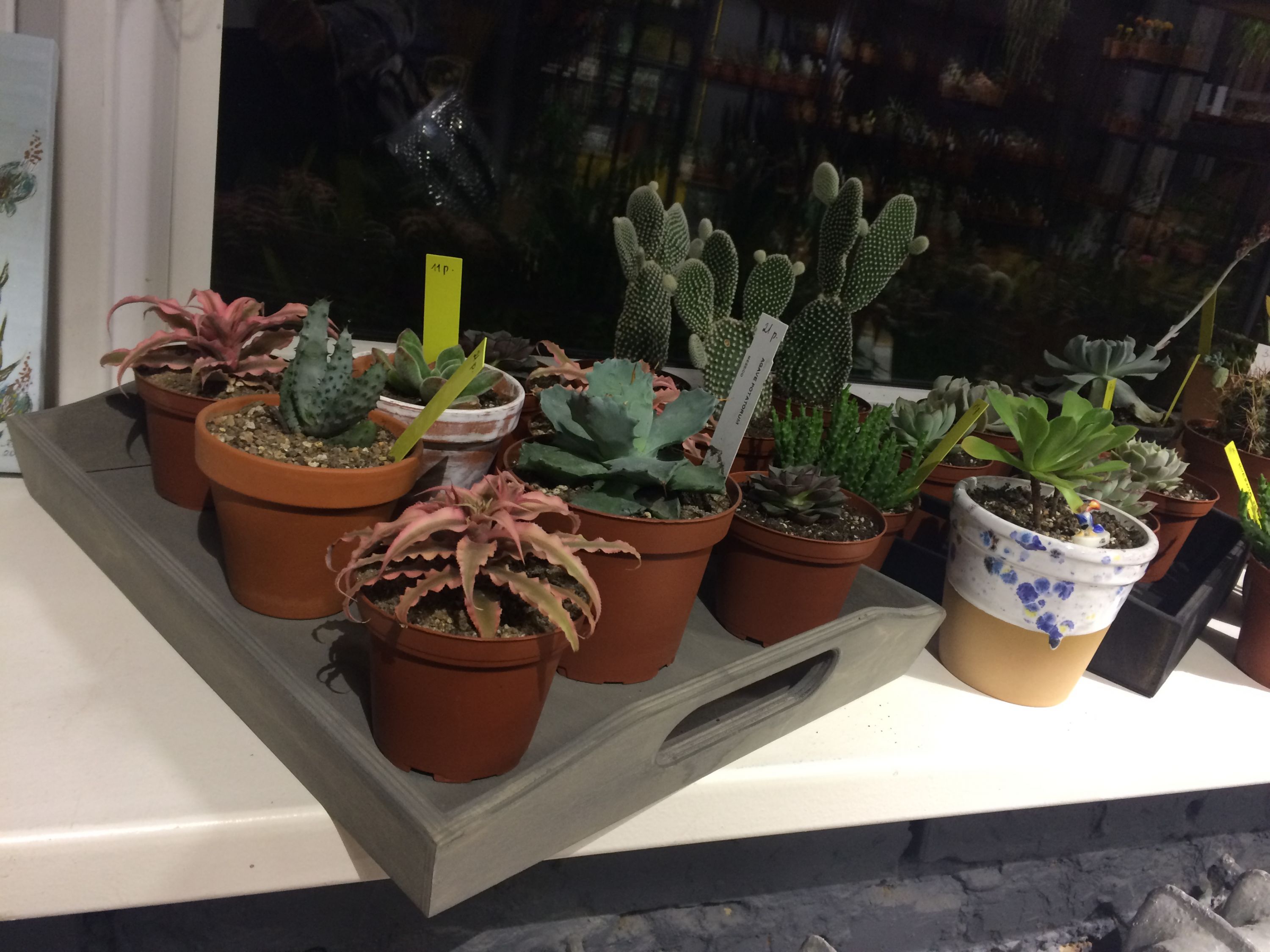 Много суккулентов, как привозных, так и из собственной теплицы владельцев магазина: