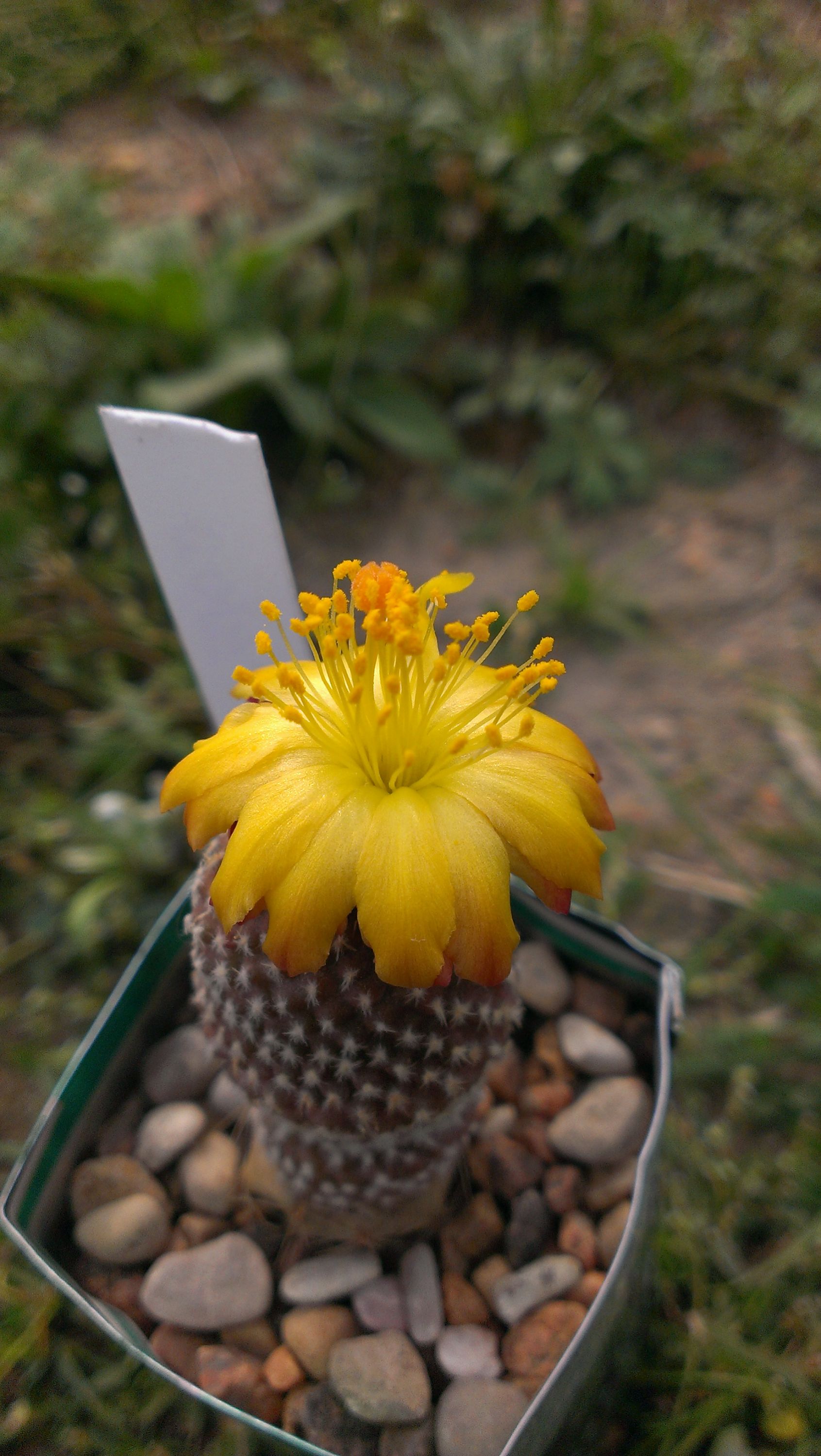 Copiapoa laui     Растение из Градеца,4 бутона было,вытянуло только 1,остальные  засушило,столько в дороге,понятное дело :)