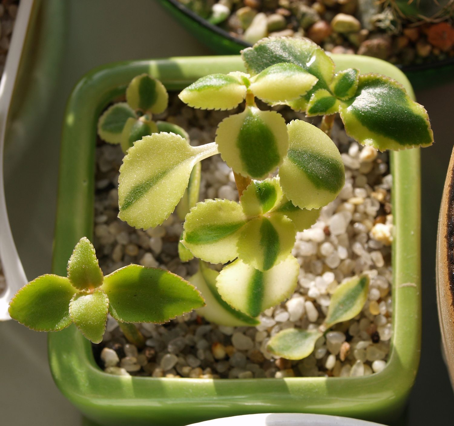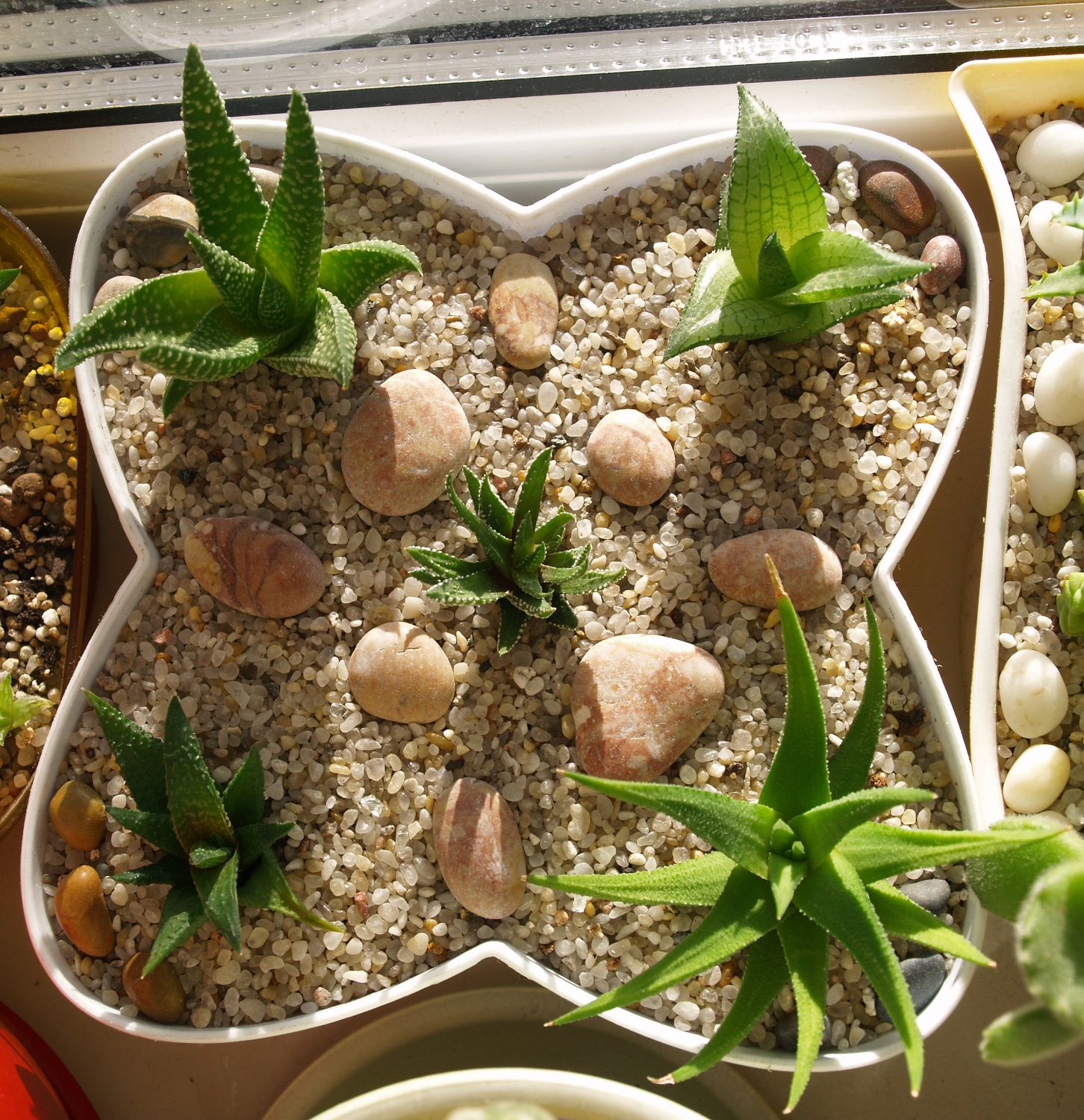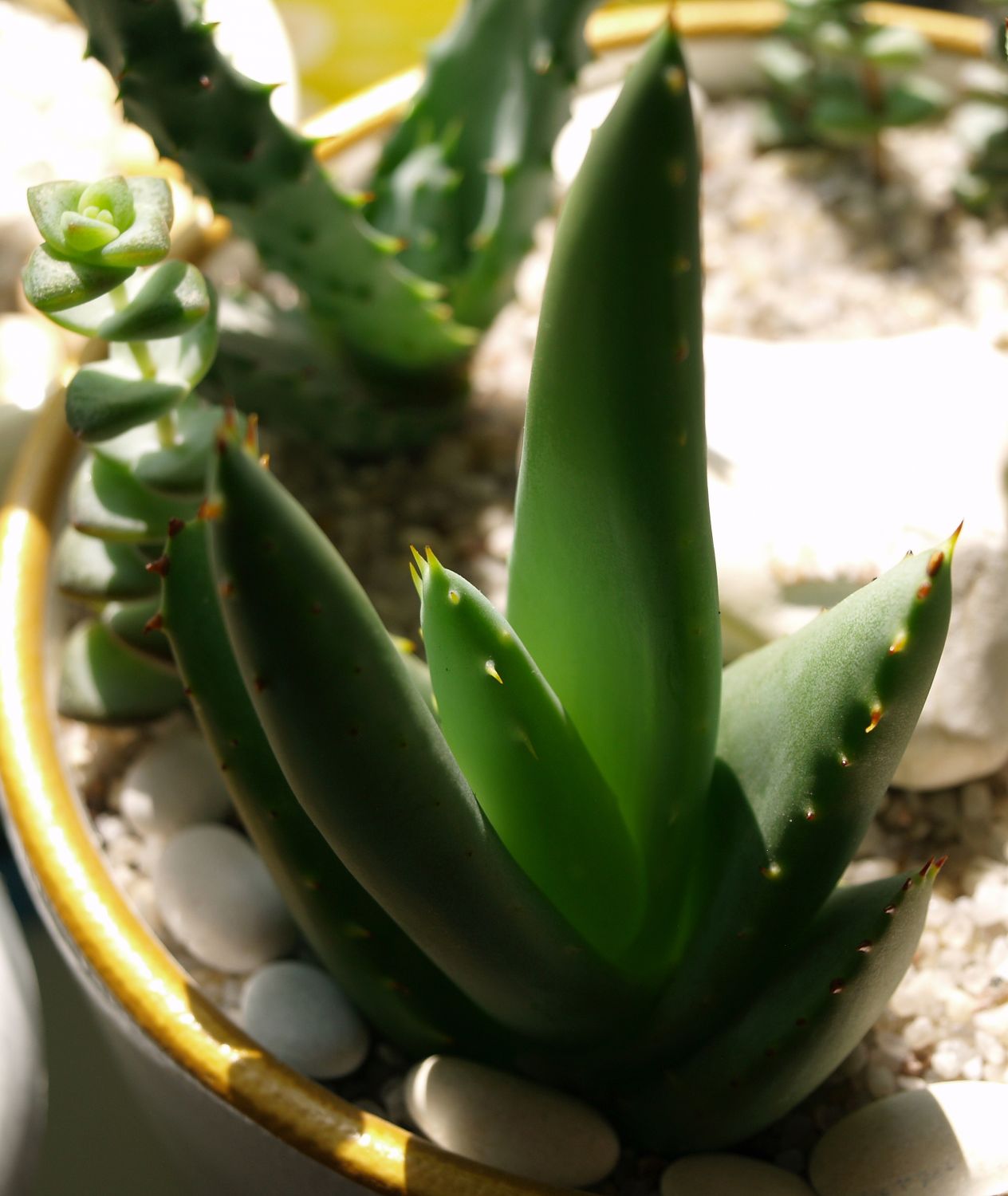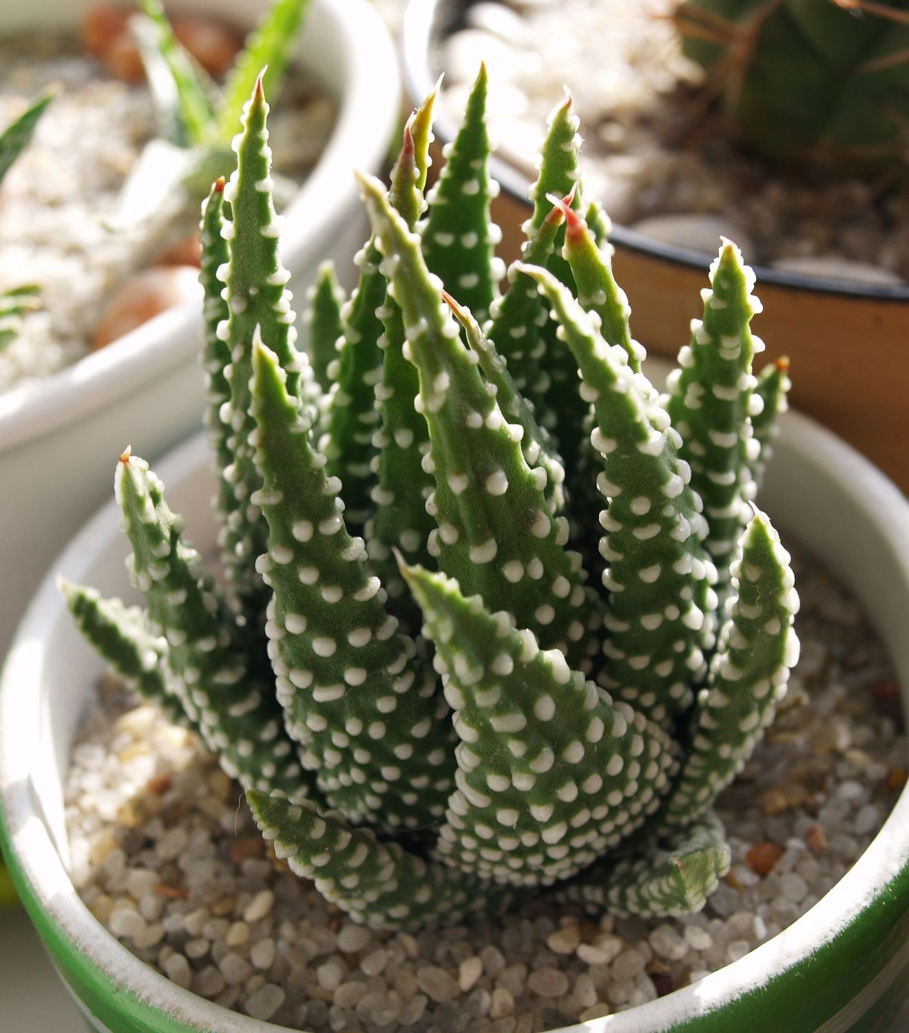 Понравилось мне держать дома эти 2 кактуса и со временем появился интерес к суккулентам, которые я собирал в разных местах и высаживал в плошки.  Остальные кактусы не были интересны, да и жена была против кактусов. Потом, постепенно, интерес к суккулентам по уменьшился кроме некоторых особенных для меня видов. Сейчас их в коллекции меньше десятка.