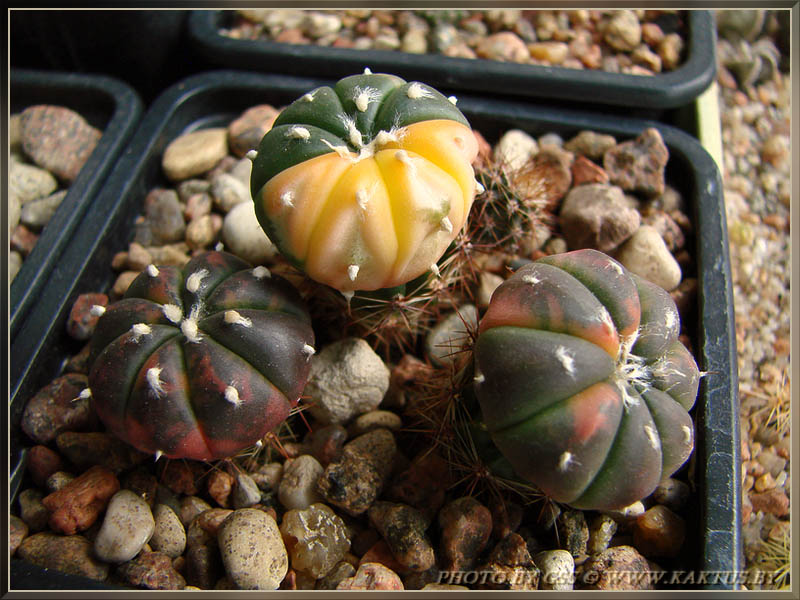 Вот сеянцы вариегат, привитые на эхинопсис и на селеницереус.