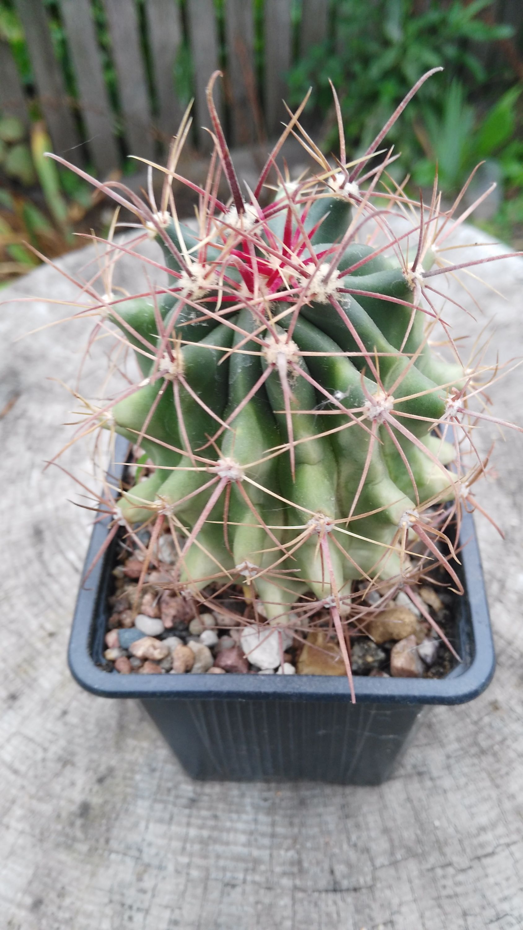Что то из голландских цереусовидных, в период роста колючки красные, зимой обычного цвета, может этот факт натолкнет на какие нибудь предположения?