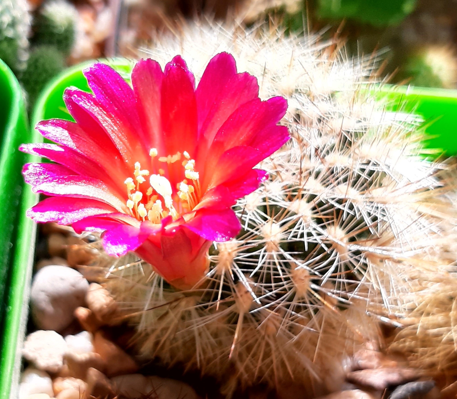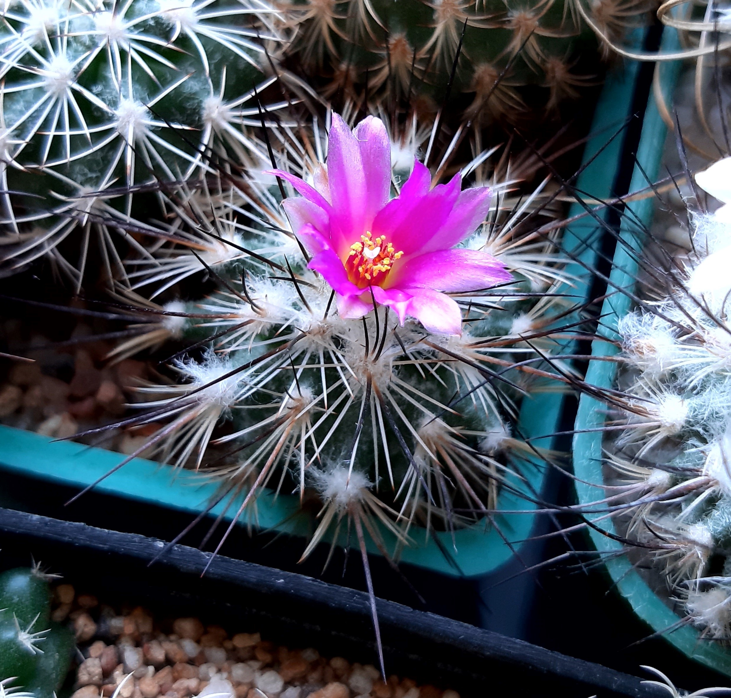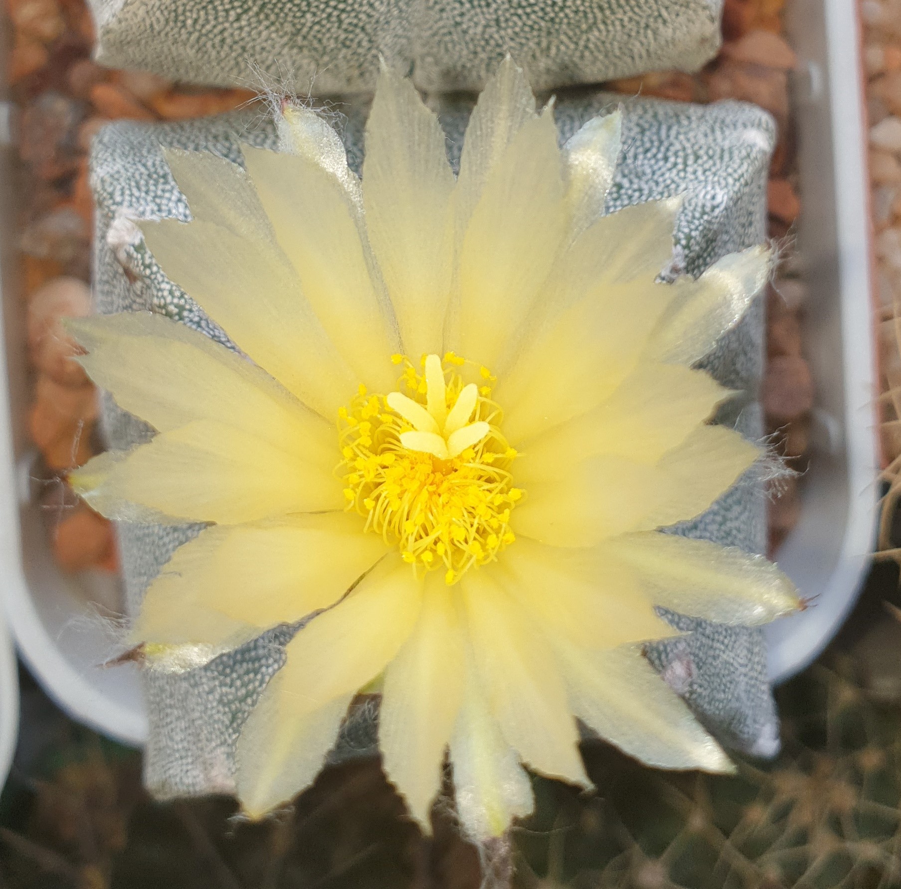 И вот наступило финальное цветение одной из жемчужин моей коллекции Neogomessia agavoides(Ariocarpus agavoides). Дата всходов 4.07.2019(семена от Яна Новака, Чехия), первое цветение. Сам посеял, сам привил и довел мой первый удачный ариокарпус до цветения. Есть и корнесобственные экземпляры, но они гораздо мельче в размерах. Что ж, следующие на очереди A.trigonus.На этом положительном моменте сезон цветения для моей коллекции достойно завершается.