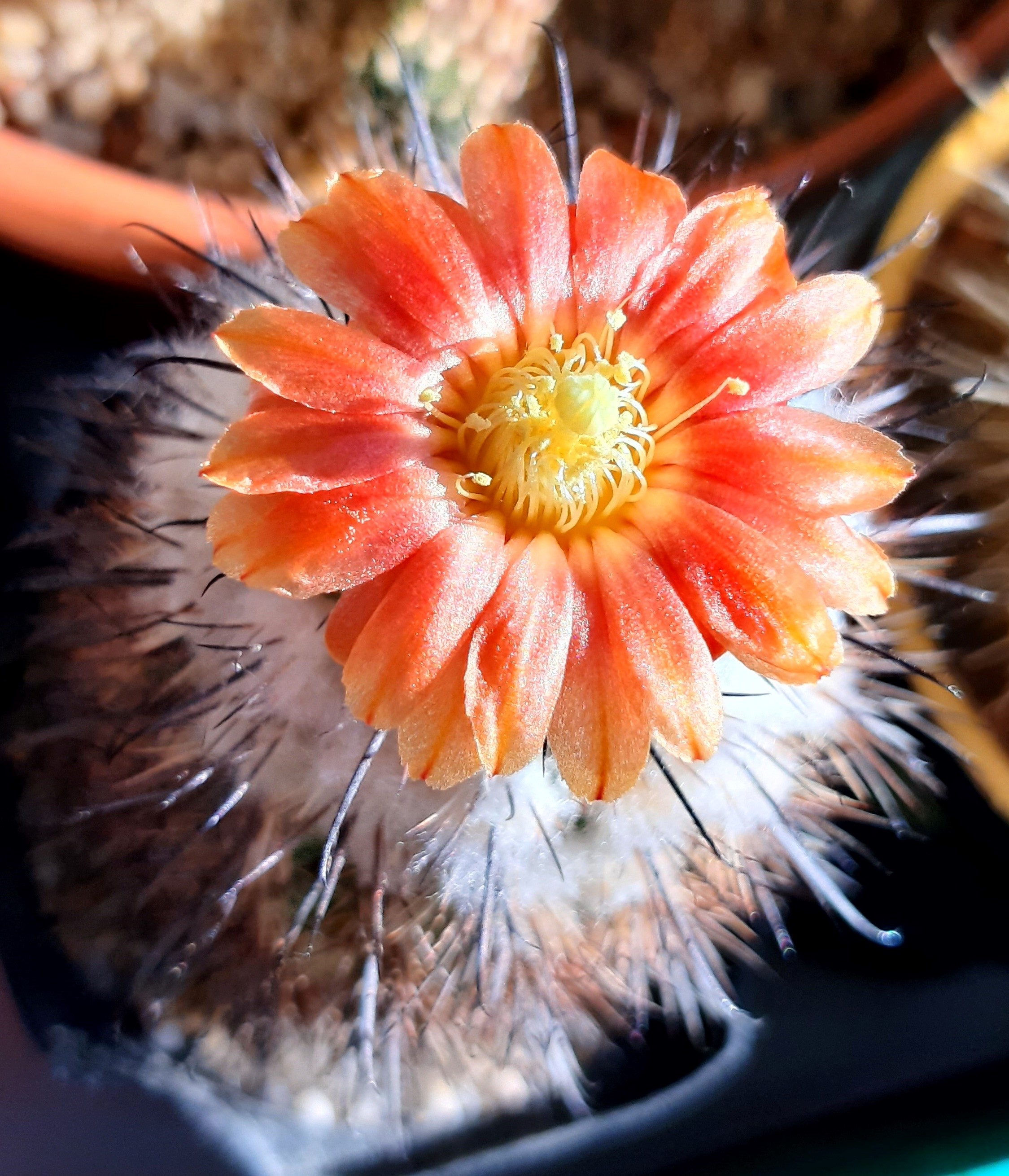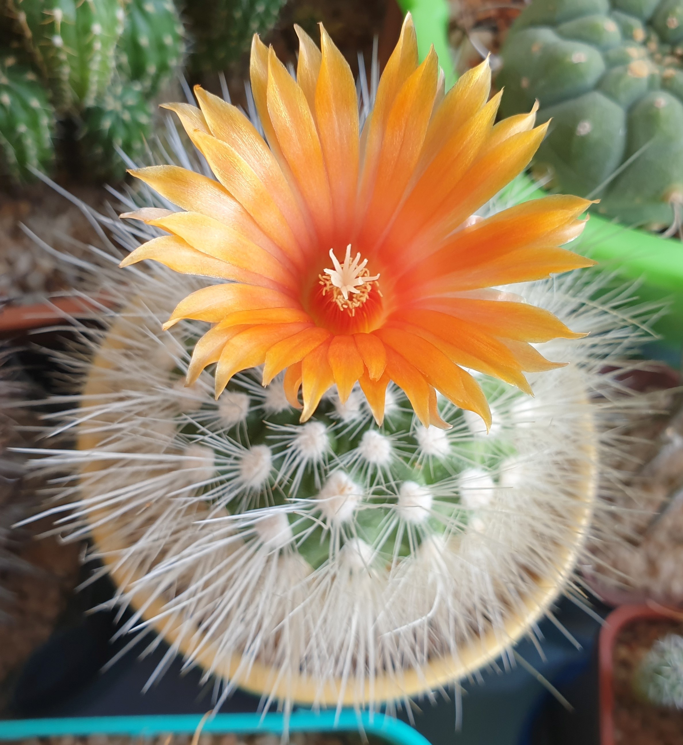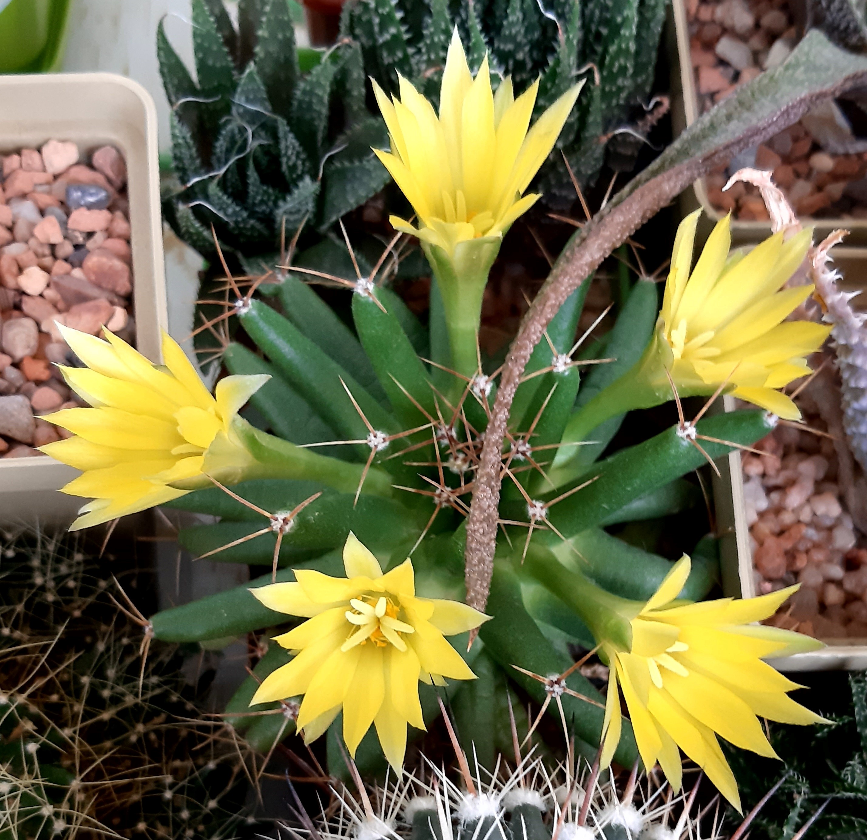 И вот наступило финальное цветение одной из жемчужин моей коллекции Neogomessia agavoides(Ariocarpus agavoides). Дата всходов 4.07.2019(семена от Яна Новака, Чехия), первое цветение. Сам посеял, сам привил и довел мой первый удачный ариокарпус до цветения. Есть и корнесобственные экземпляры, но они гораздо мельче в размерах. Что ж, следующие на очереди A.trigonus.На этом положительном моменте сезон цветения для моей коллекции достойно завершается.