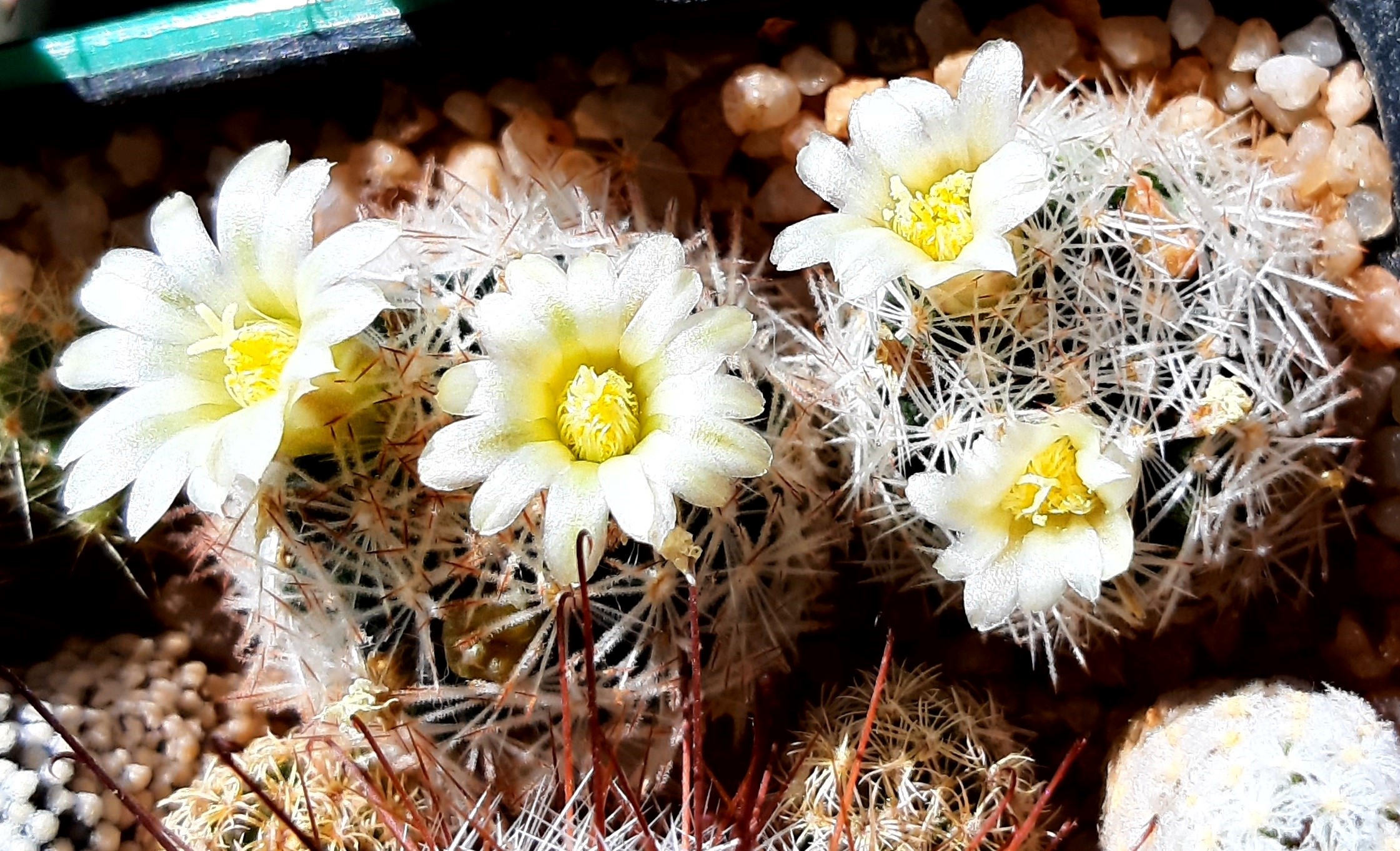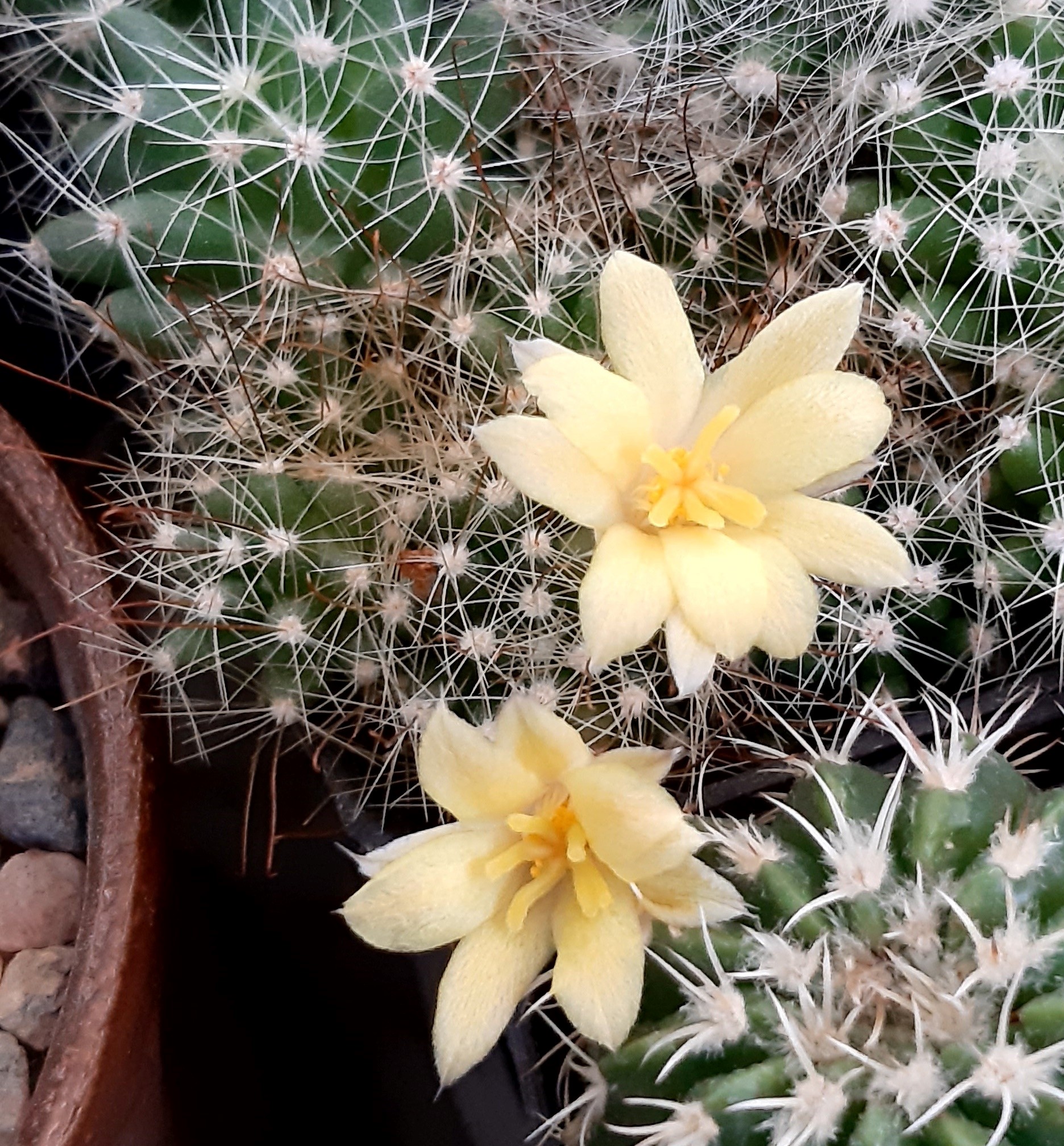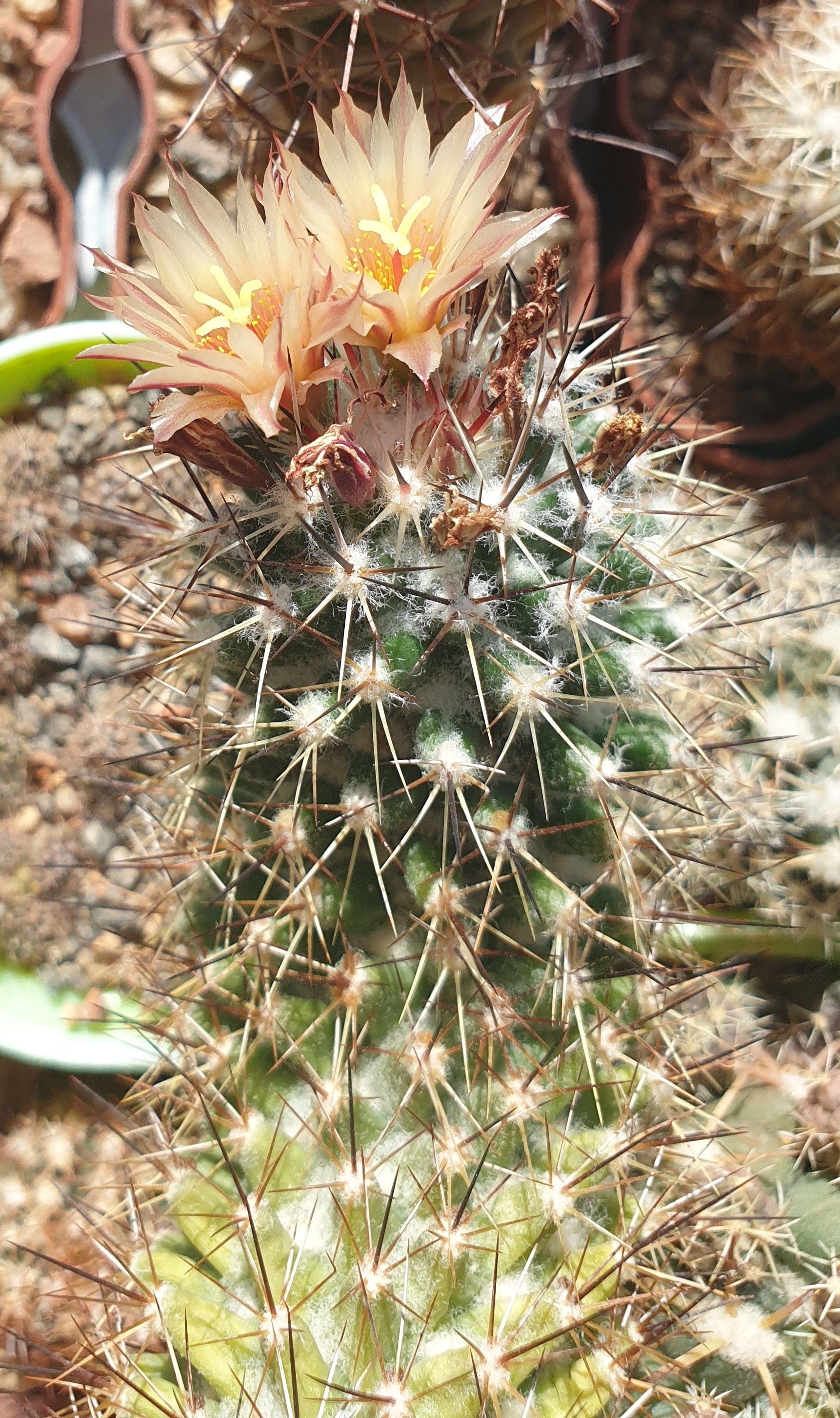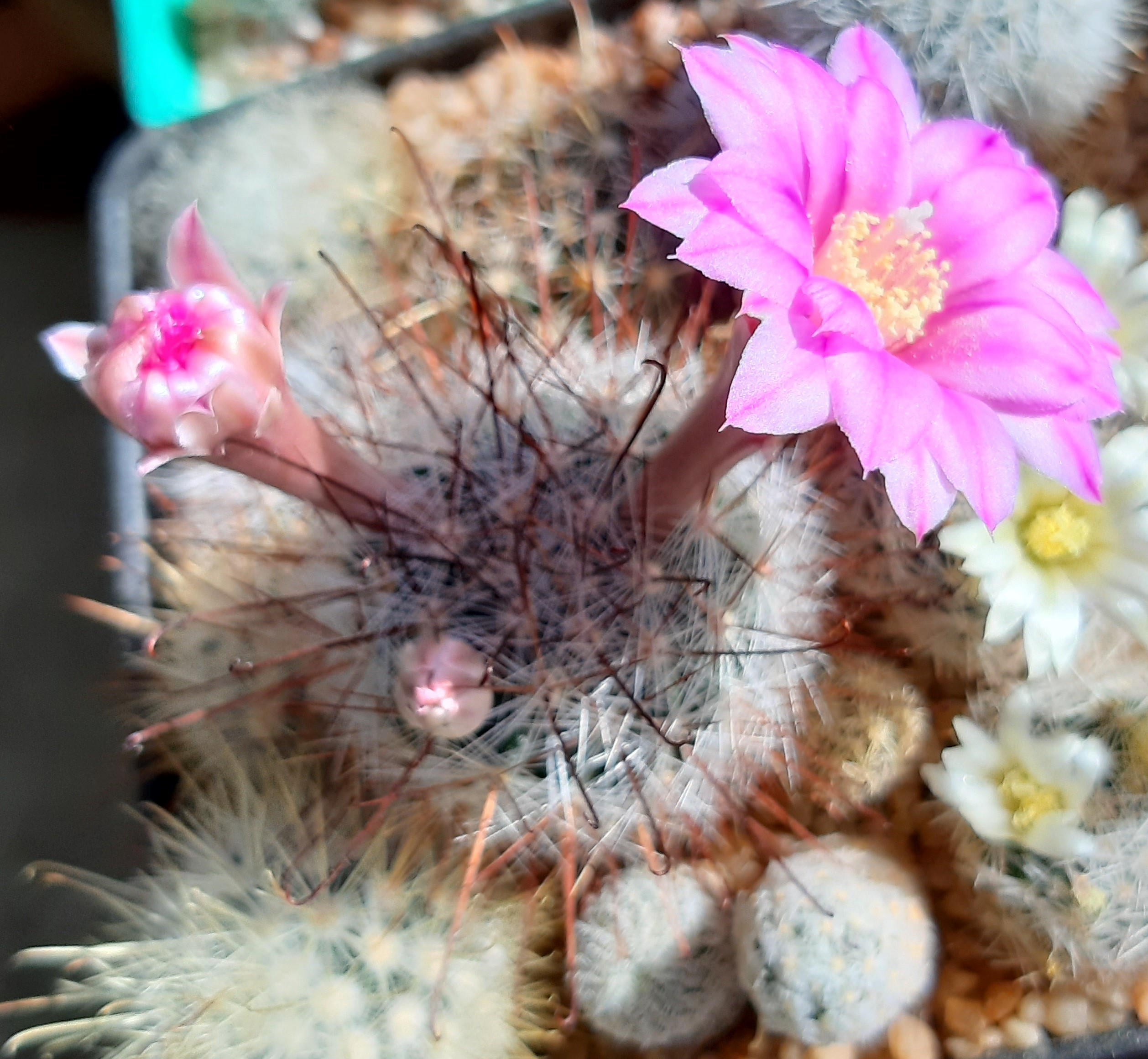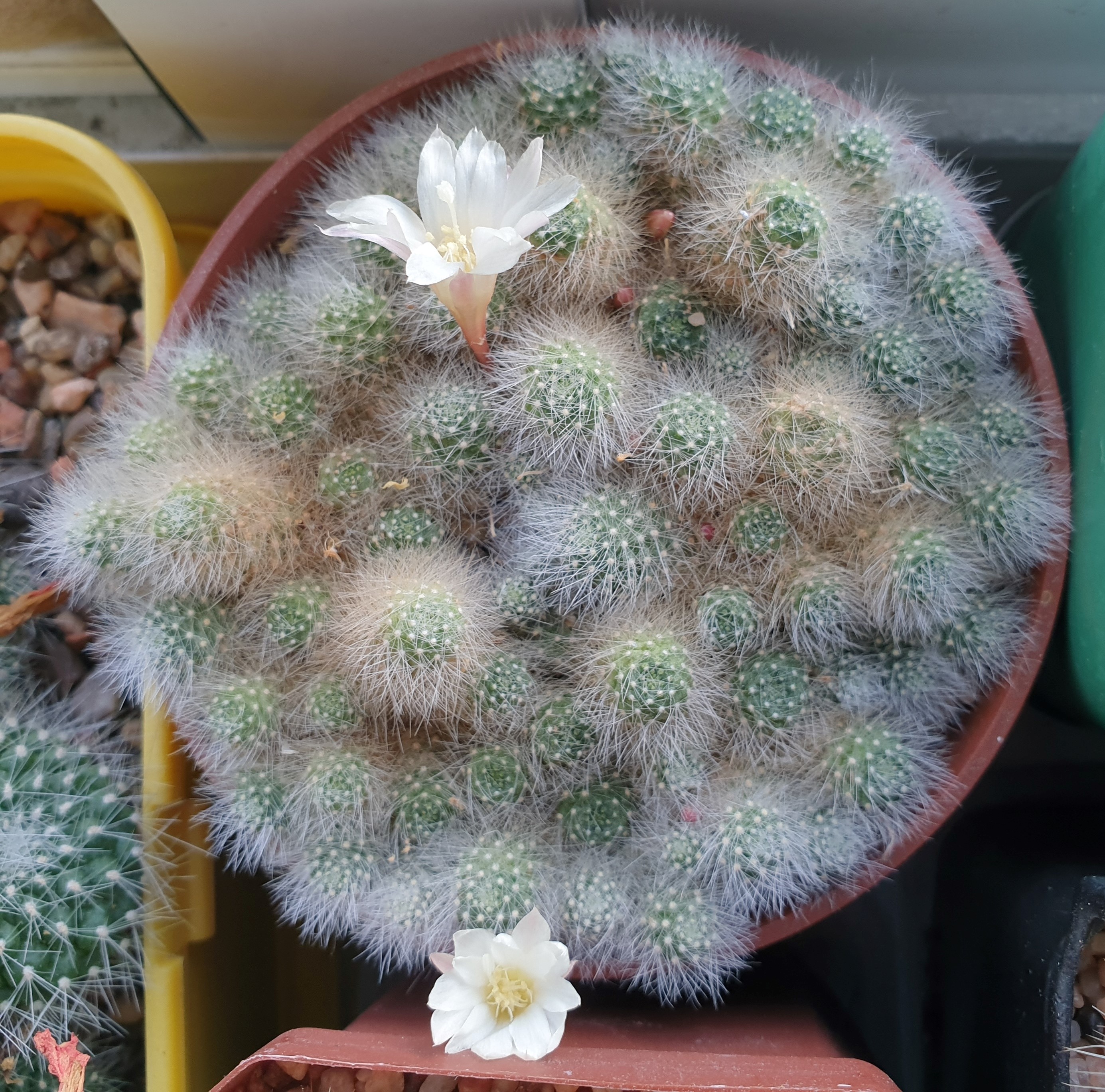 Слева внизу – Mammillaria flavovirens (привет уважаемому viache!), справа вверху – Mammillaria pseudoperbella