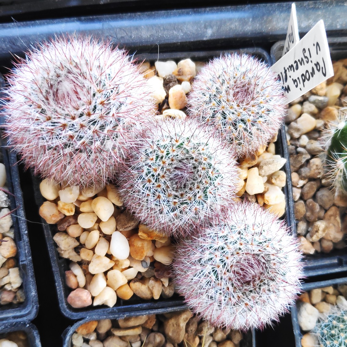 Dolichothele zephyranthoides. Казалось в минералку не так-то просто что-то засунуть, а эти экземпляры втянулись вглубь субстрата.