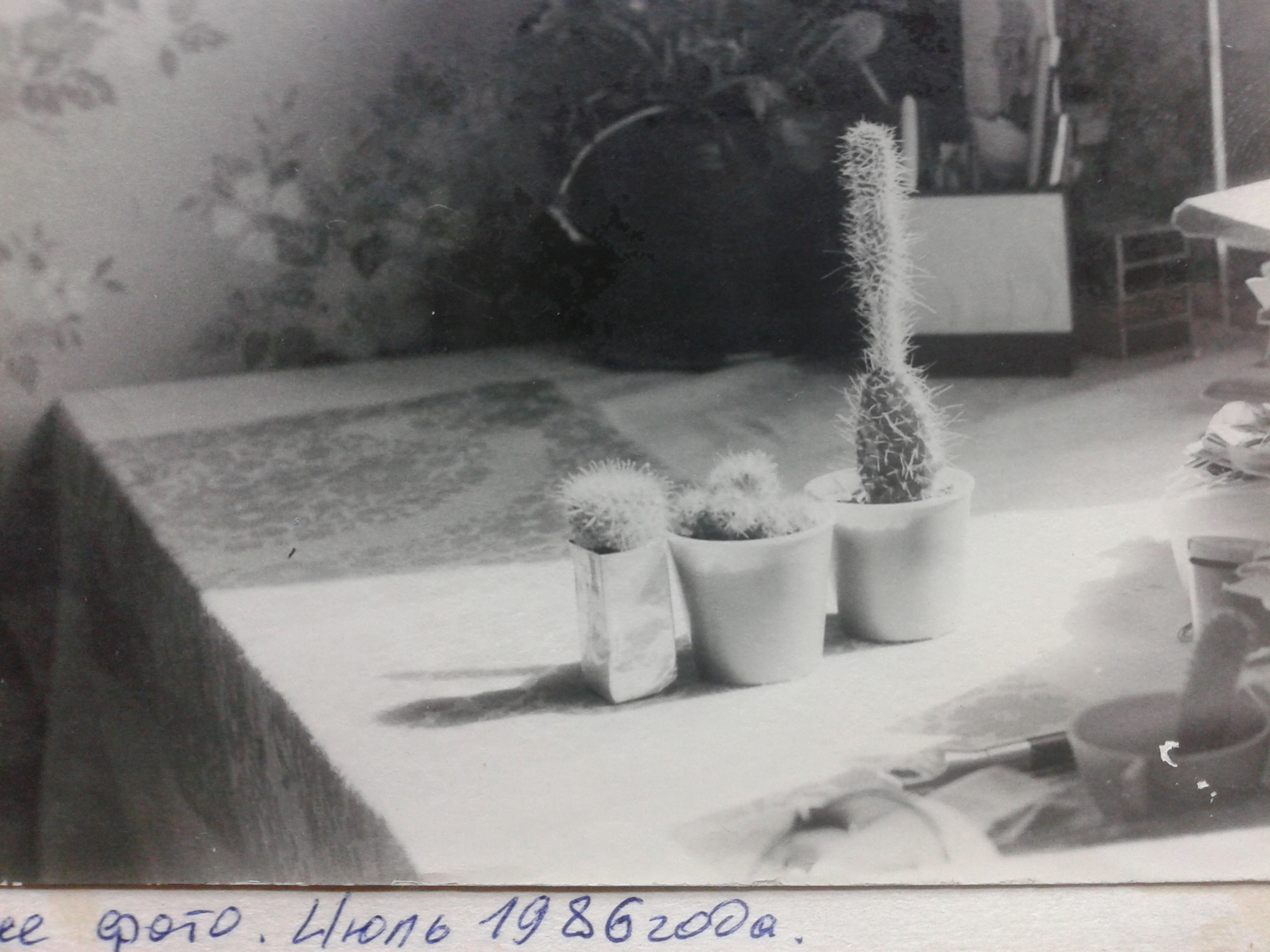 На приз не претендую- пусть реально достанется кому нибудь из новичков..А вот Пару фоток из самого начала  своего увлечения- накину.Декабрь 1985- просто нашёл кусочек опунции- на фото- справа.Перефоткал старую ч/б бумажку.
