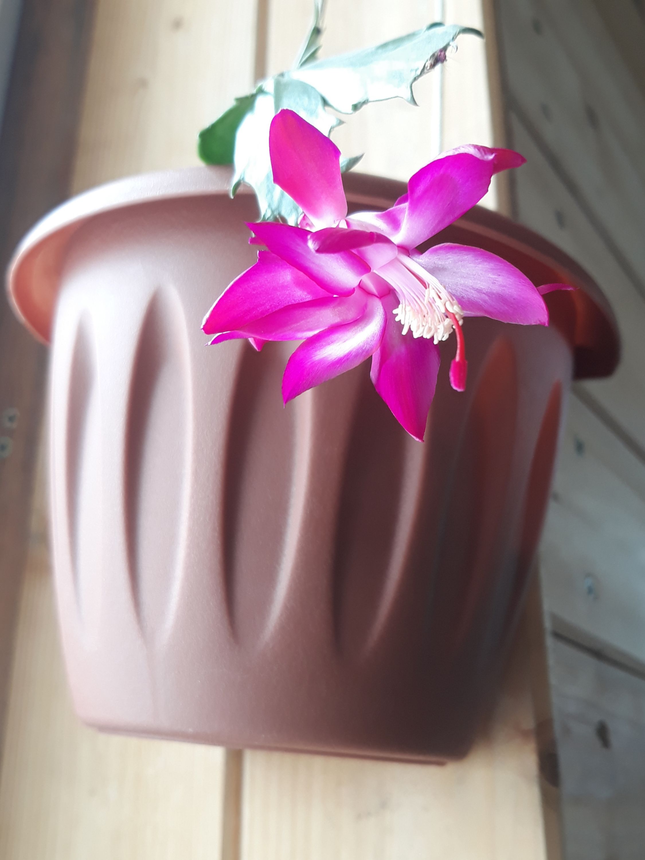 Turbinicarpus bonatzii, San Bartolo. Третий день цветения. Свежеоткрывшийся цветок имеет диаметр 15 мм, а на третий день этот же цветок увеличивается до диаметра в 25мм, на фото как раз запечатлен этот момент, 'старый и юный'. А за окном идет хлопьями снег.