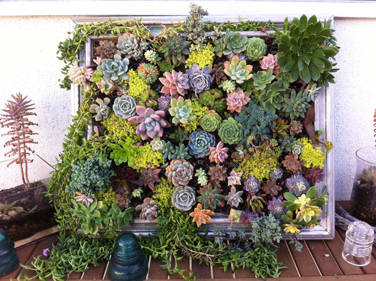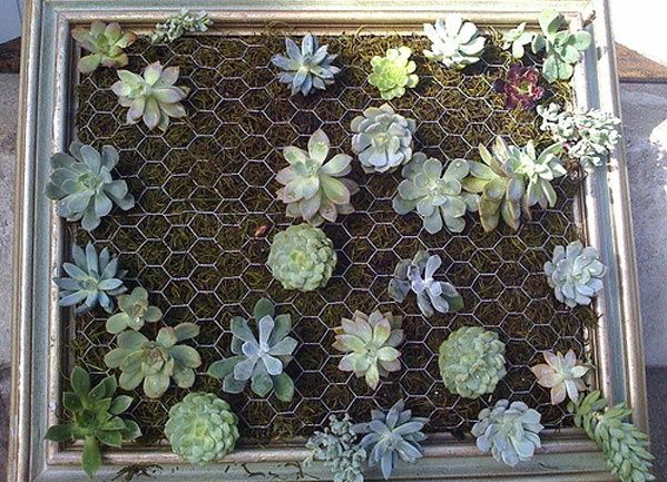 10. Когда композиция будет готова, не спешите вешать её на стену. Оставьте раму на 2 недели в горизонтальном положении, чтобы суккуленты хорошо укрепились в почве своими корнями.