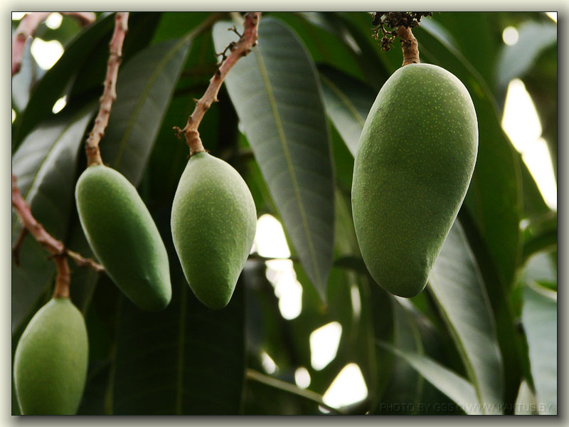 Ну а это манго на дереве. Когда через неделю пришёл заснять их зрелыми, оказалось, что их уже кто-то "снял" до меня... :-x