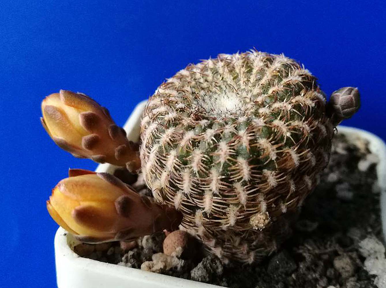 Lobivia aurea. Два бутона на одном цветоносе.