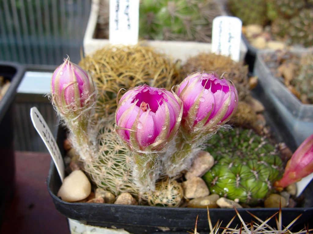 Вживую отличаются. Но чем, объяснить не сумею :) Первое, что приходит на память, так это то, что у арахнаканты тоньше колючки и они как бы более прижатые и тёмные. Цветы у разных вариаций арахнаканты могут быть жёлтые, оранжевые и малиновые.