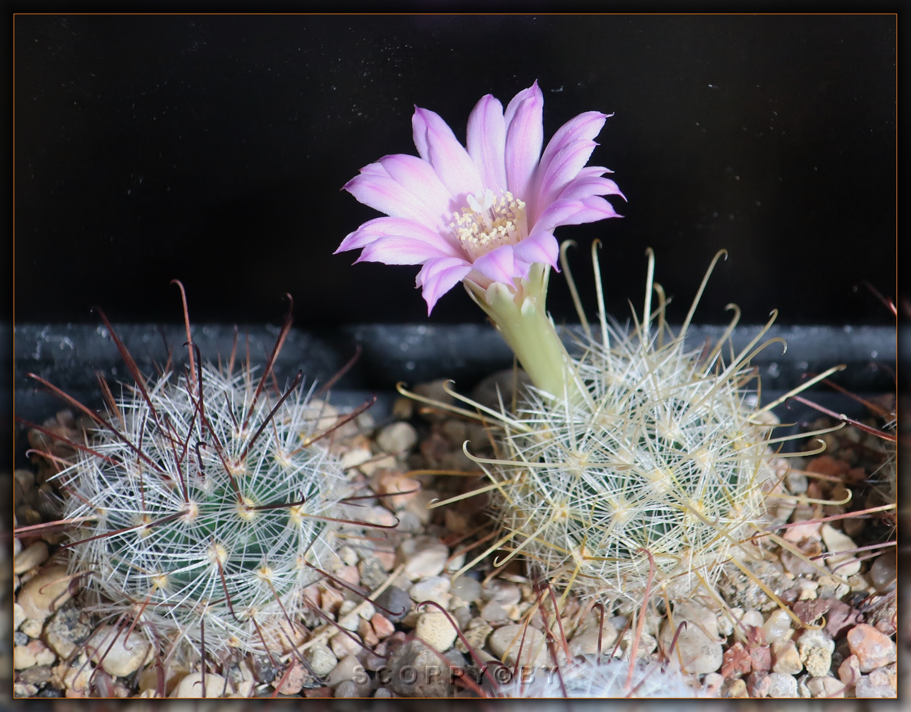Впервые за долгие годы зацвел огромный Echinomastus (Thelocactus) macdowellii. Из-за его размеров и красноватой у основания молодой колючки в самом апексе, сильно сомневался, что кактус относится к этому виду, хотя прошлый хозяин утверждал. Теперь все стало на свои места, чему я очень рад. [:-}