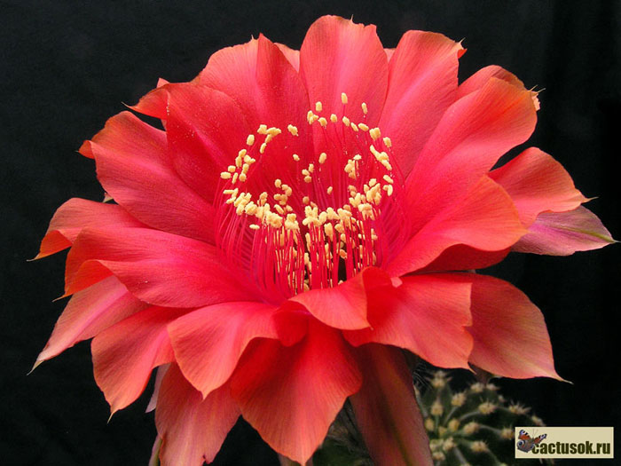 Детки echinopsis hybrid, лето 15г. (Зенькова, Кактусок). Слева направо: Red Paramount, Edwardian Lady, Samba (Фото цветения из нета)