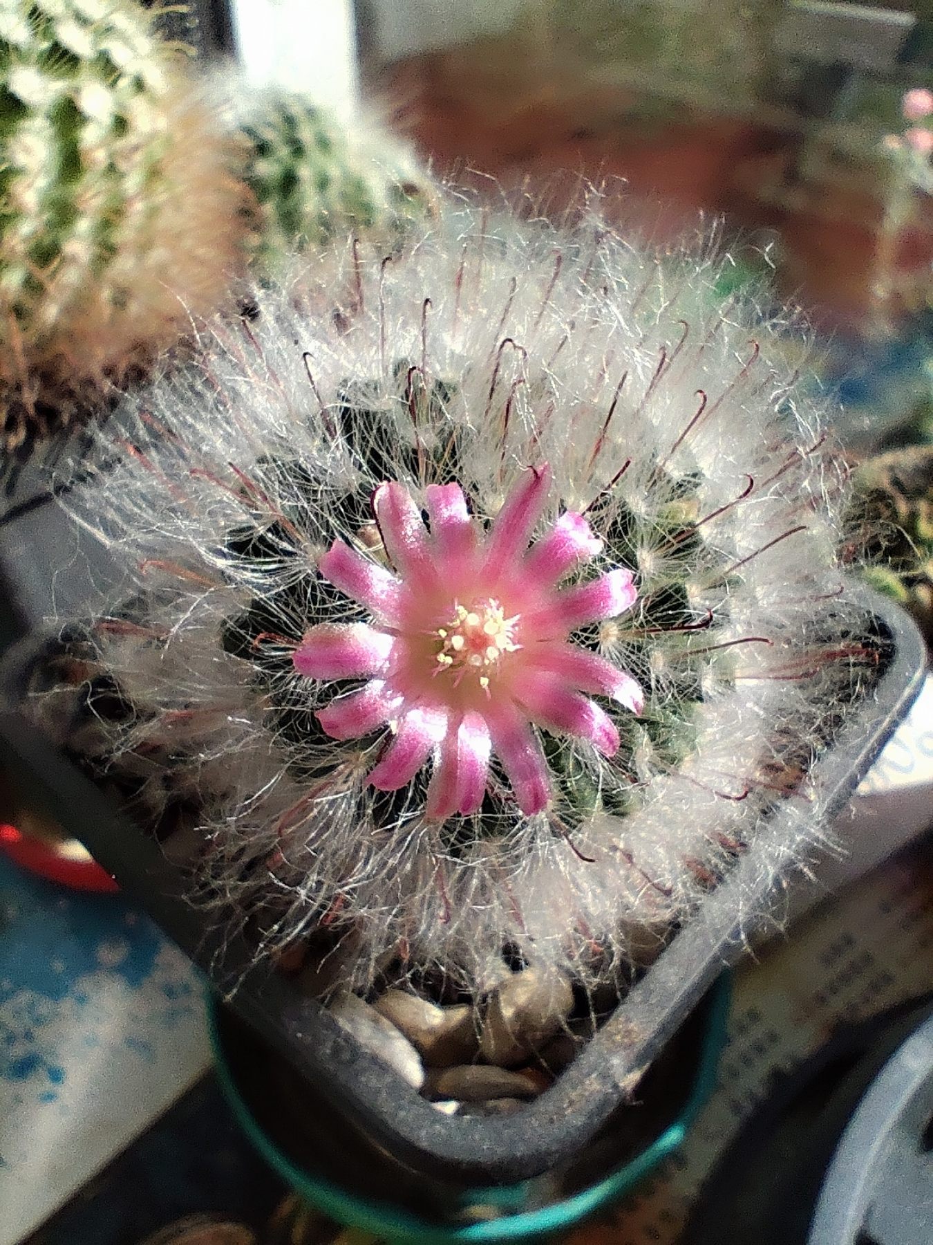 Mammillaria bocasana cv. Lotta Haage.