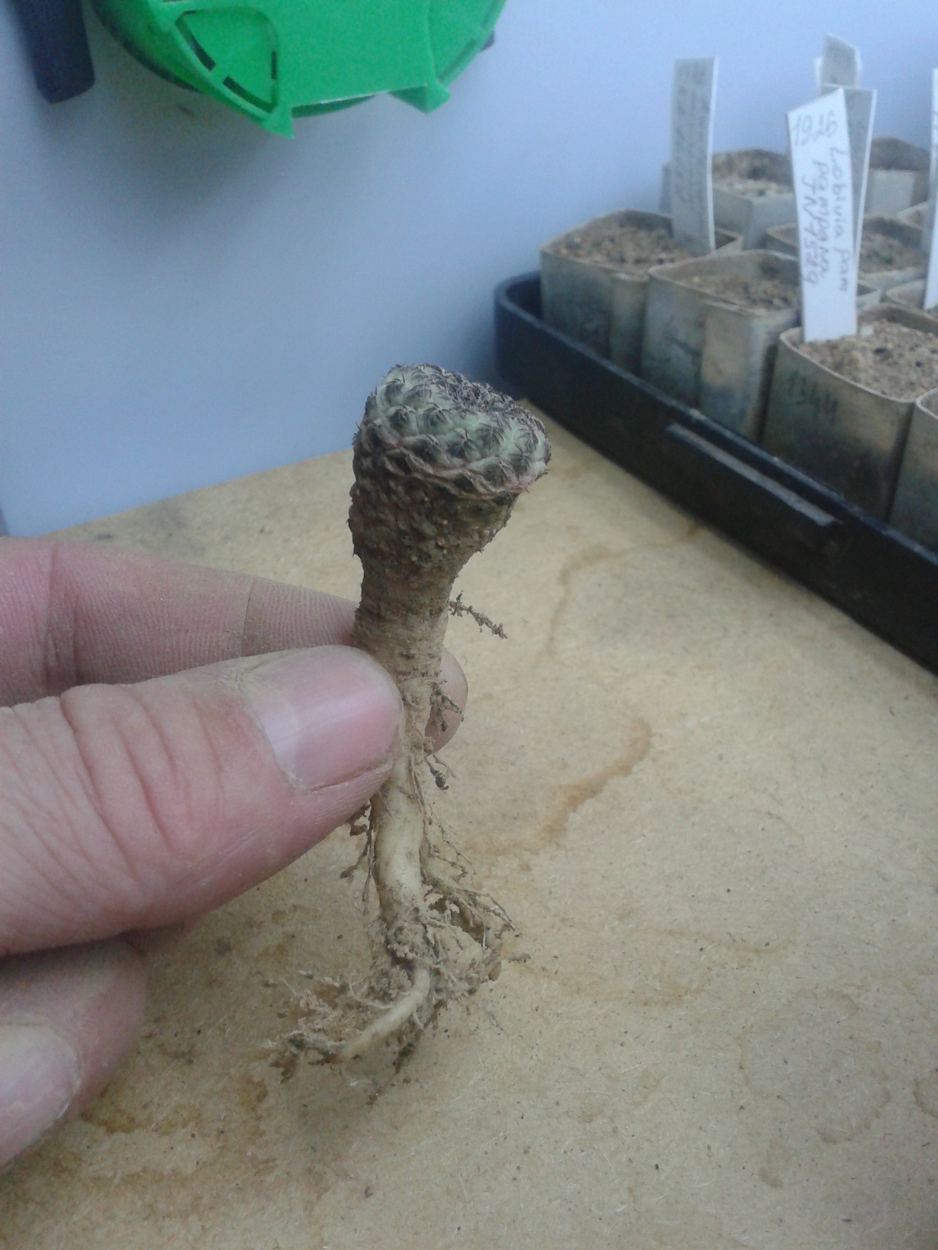 И здесь так же корни- на прививке вверх ногами-Lobivia kupperiana