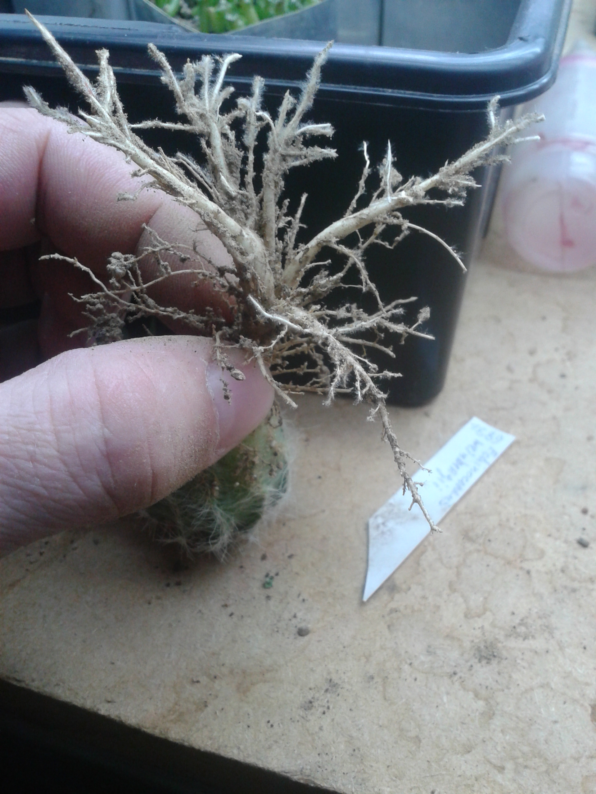 С возрастом у M.schiedeana образуется мощнейшая репа, как у лофы или ариокарпусов. Очень эффектная! Я тоже получал удовольствие от созерцания её корня. К сожалению она подмерзла и сгнила, но чудом сохранились два отростка и они успешно укоренились.