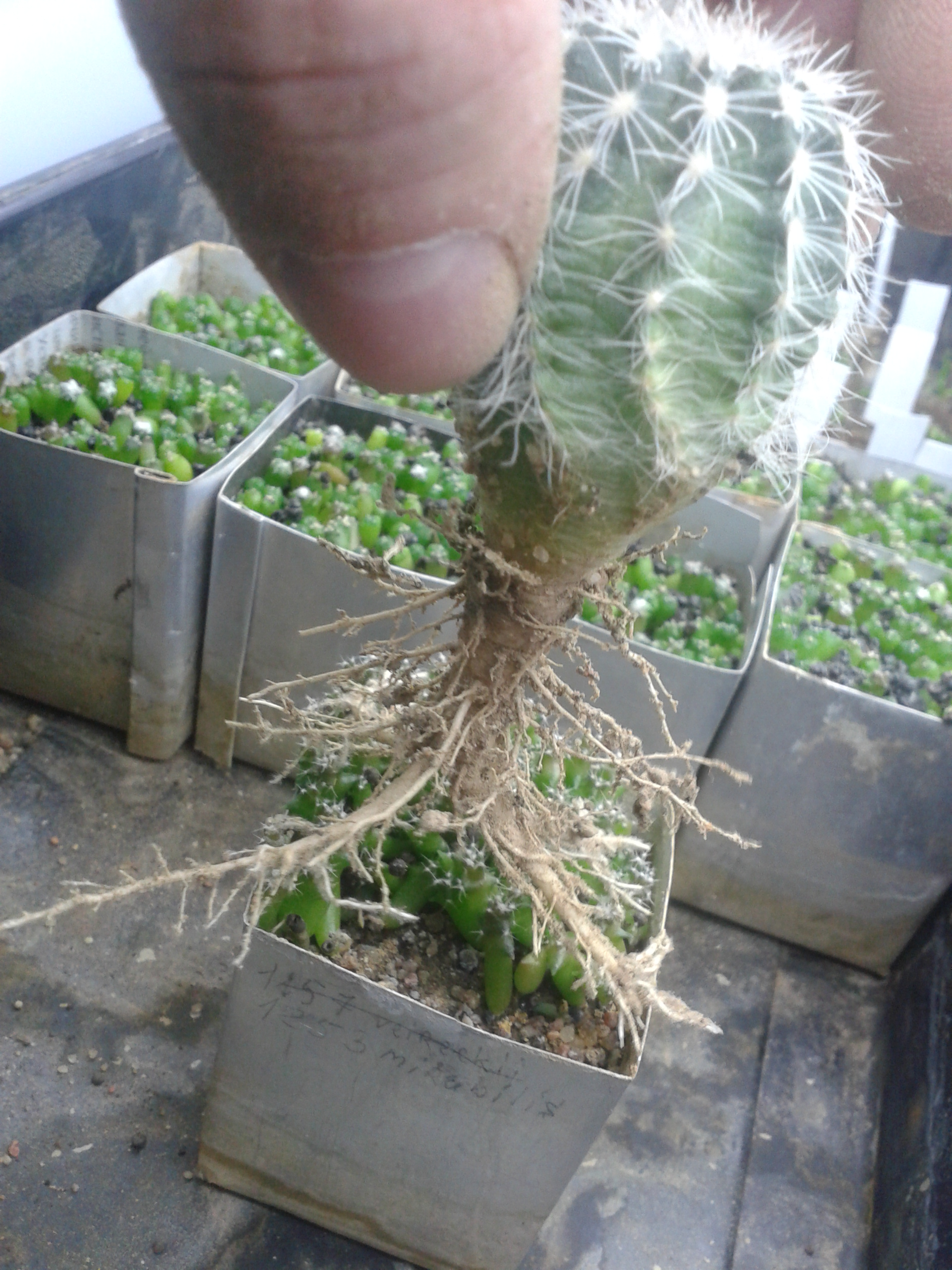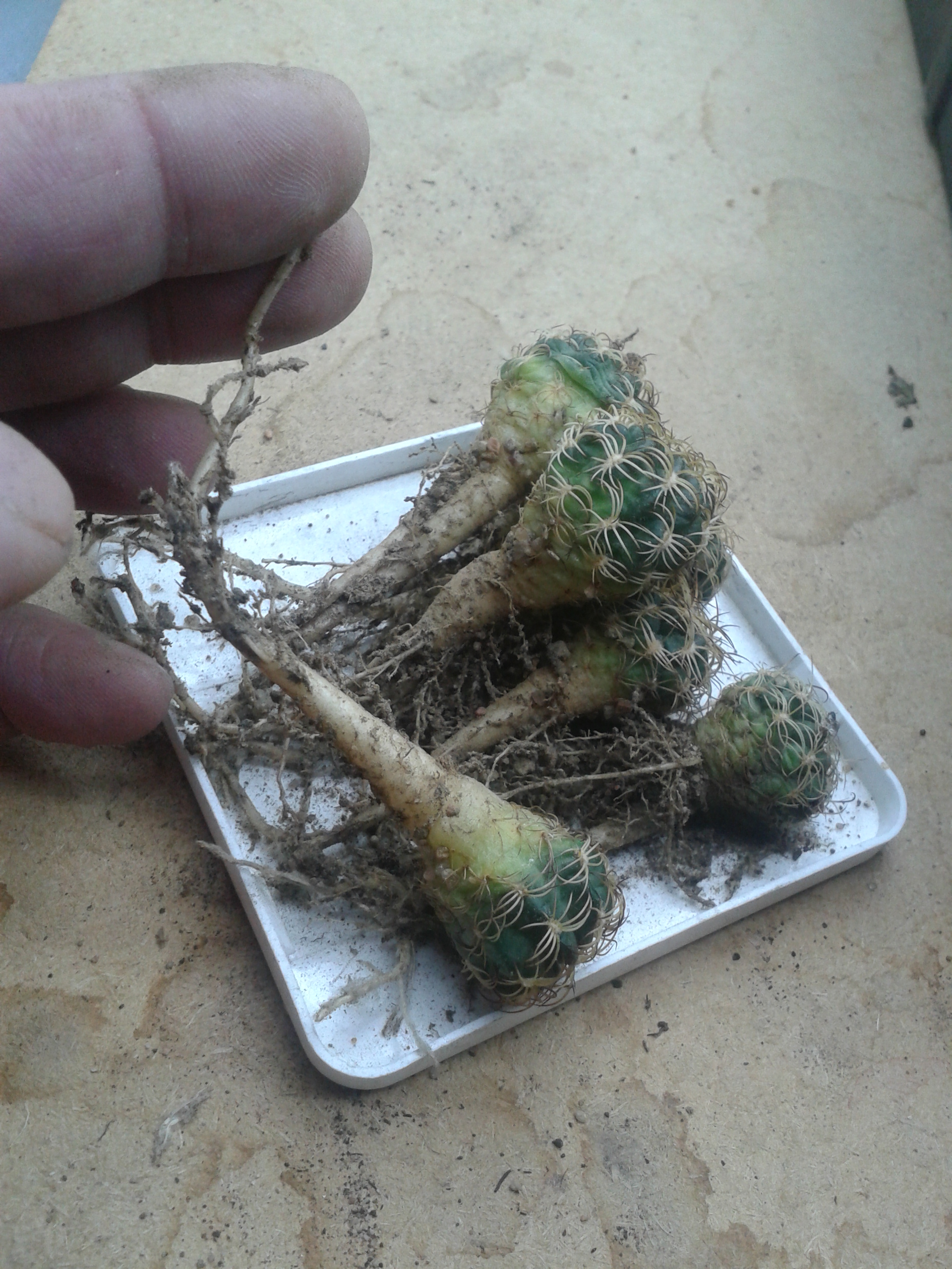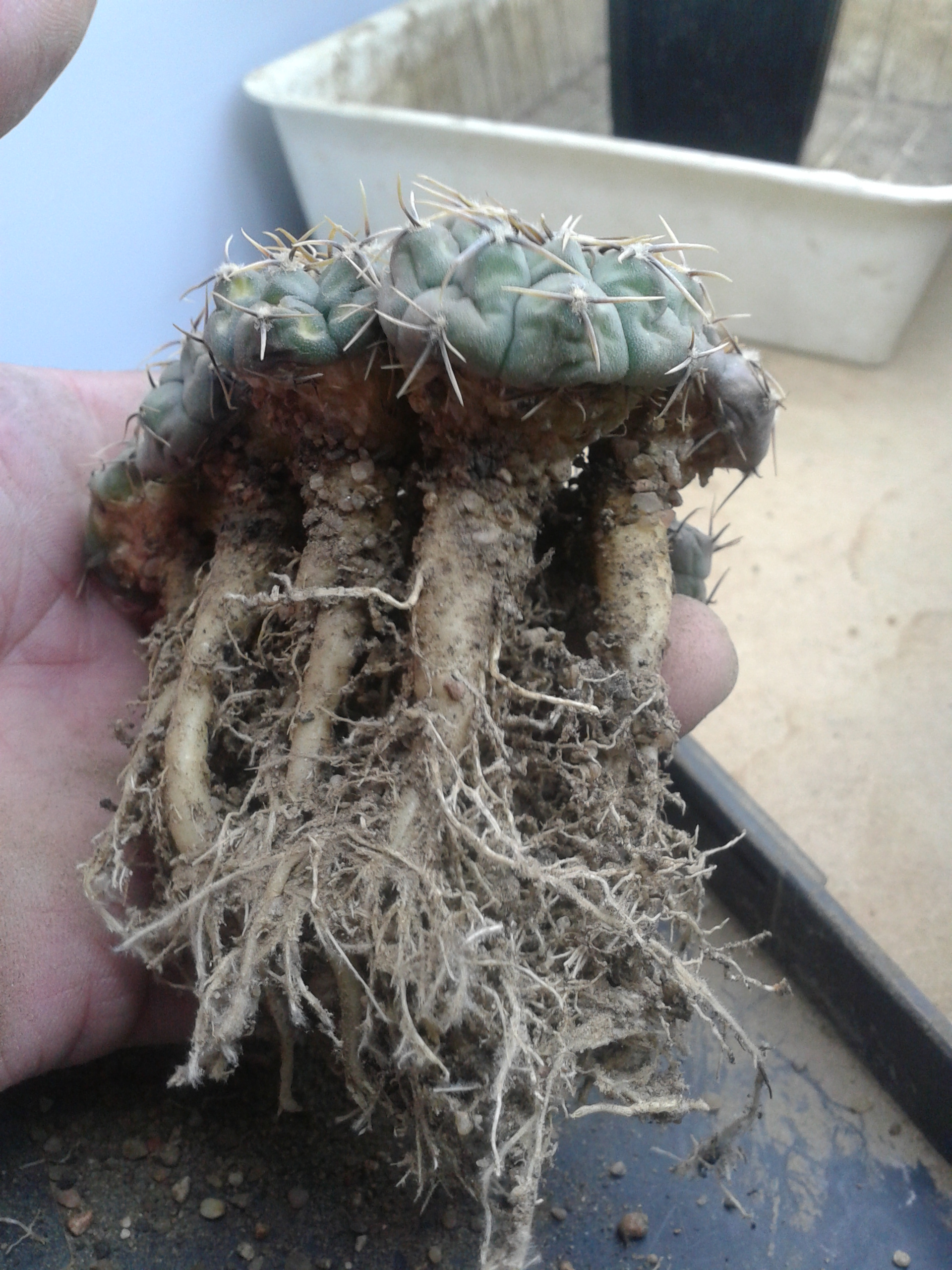 Echinocereus viridiflorus-пересадка и х корешки.И это не гравийка,лечуза и прочая акадама!Растут в пыли и песке