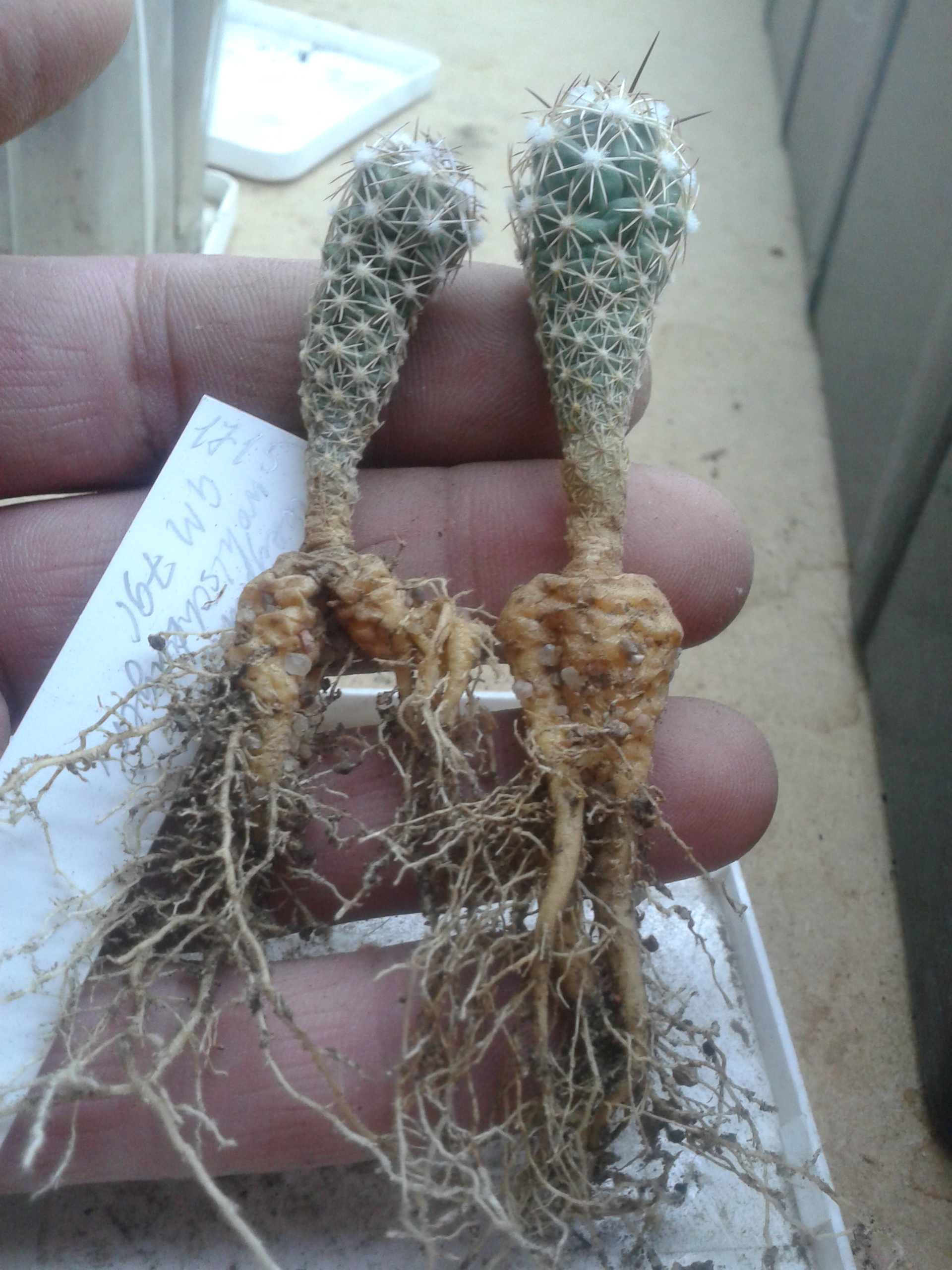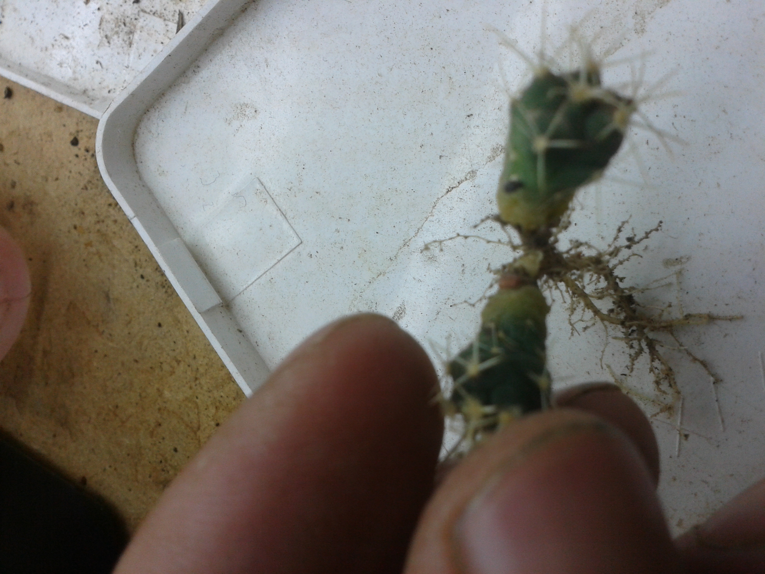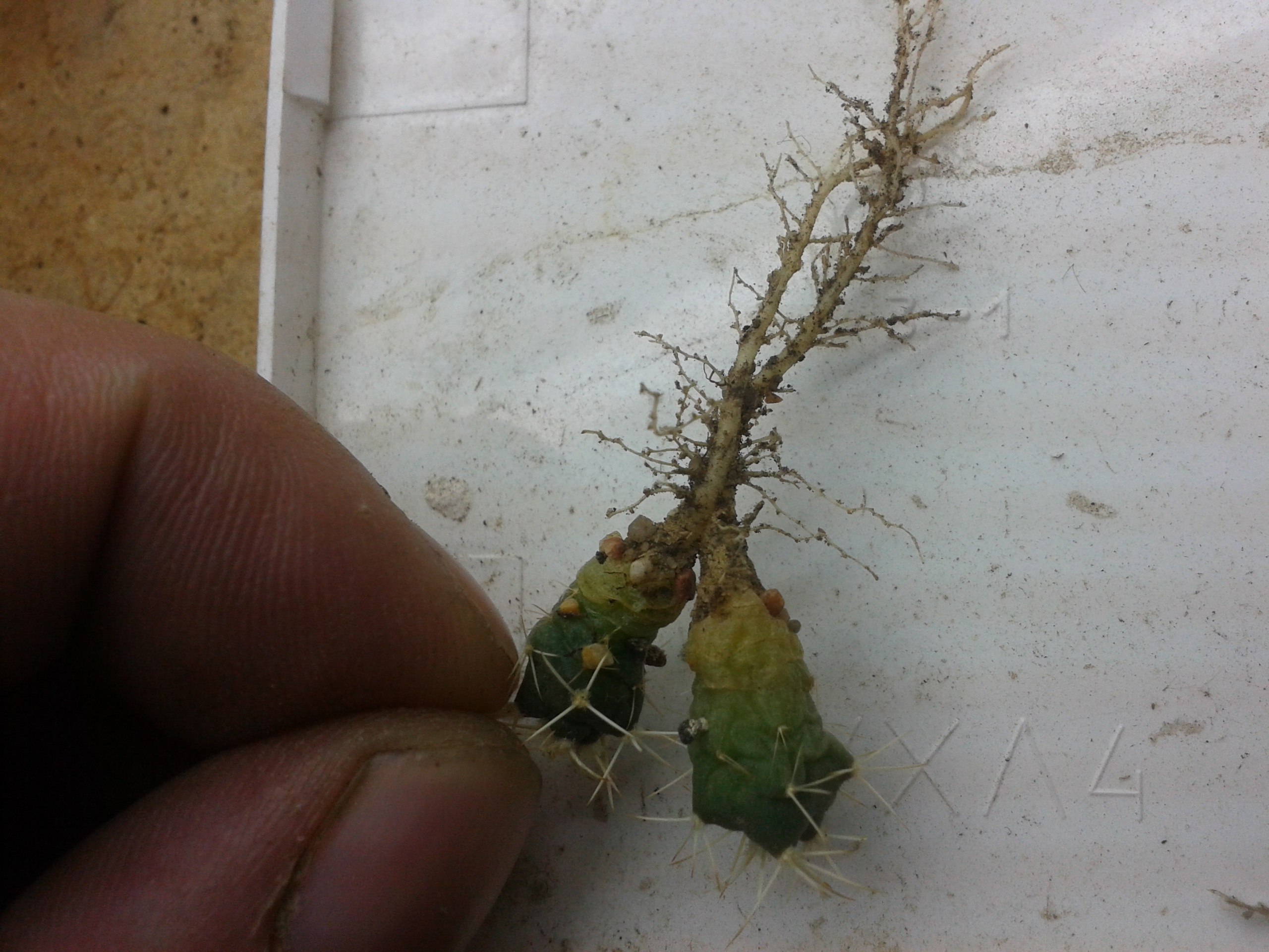 Echinocereus viridiflorus-пересадка и х корешки.И это не гравийка,лечуза и прочая акадама!Растут в пыли и песке