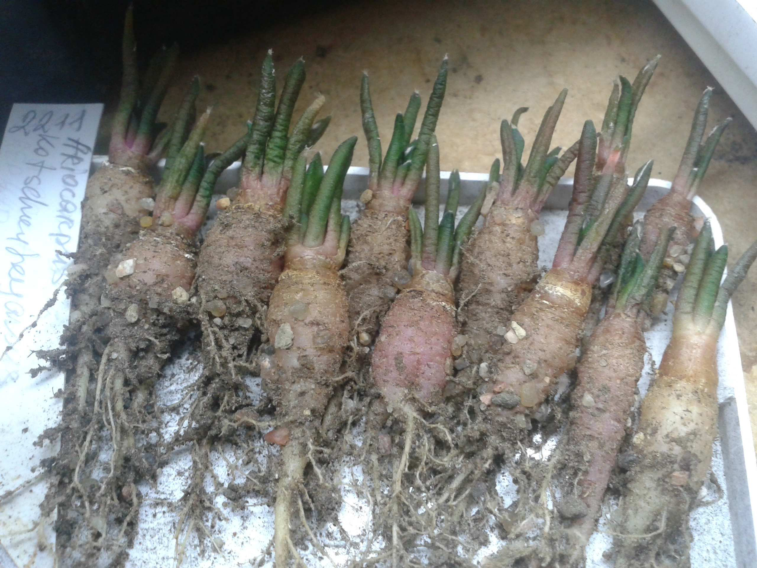 Это не корни..не репки(Ariocarpus ktschobeyanus).Ссыпал песок-верхнюю присыпку