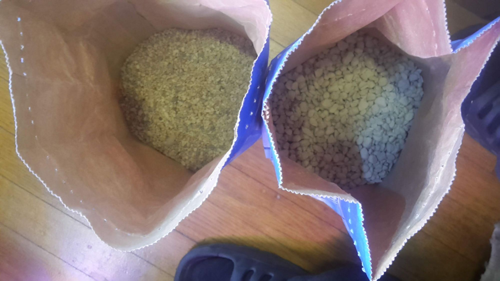 Чисто цеолитовый - в желтой упаковке, но увы, там, где я бываю, он был всего 1 раз и в маленьких пачках. Фракция этого цеолита - 1-3мм, для посева и подрастающих самое то.