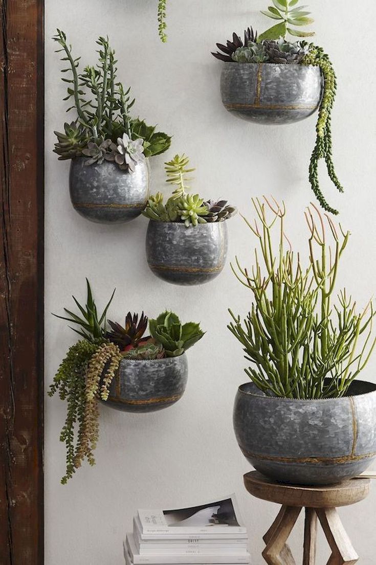 Суккуленты как элемент декора: необычные горшки, нестандартное размещение, композиции из растений.