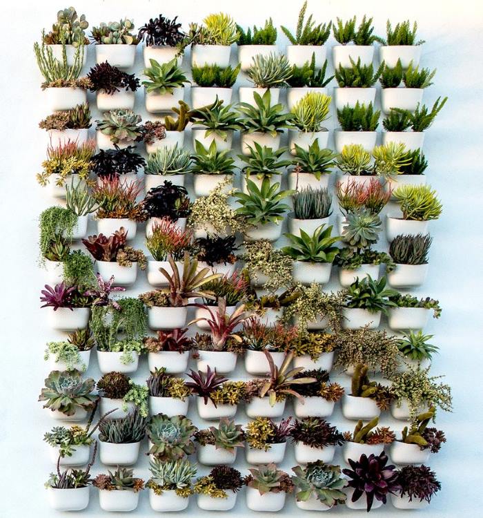 1. Не эстетично. Просто напихали в ячейки разные растения без разбору. В вертикальных "садах" очень важно подобрать суккуленты так, чтобы композиция смотрелась гармонично.