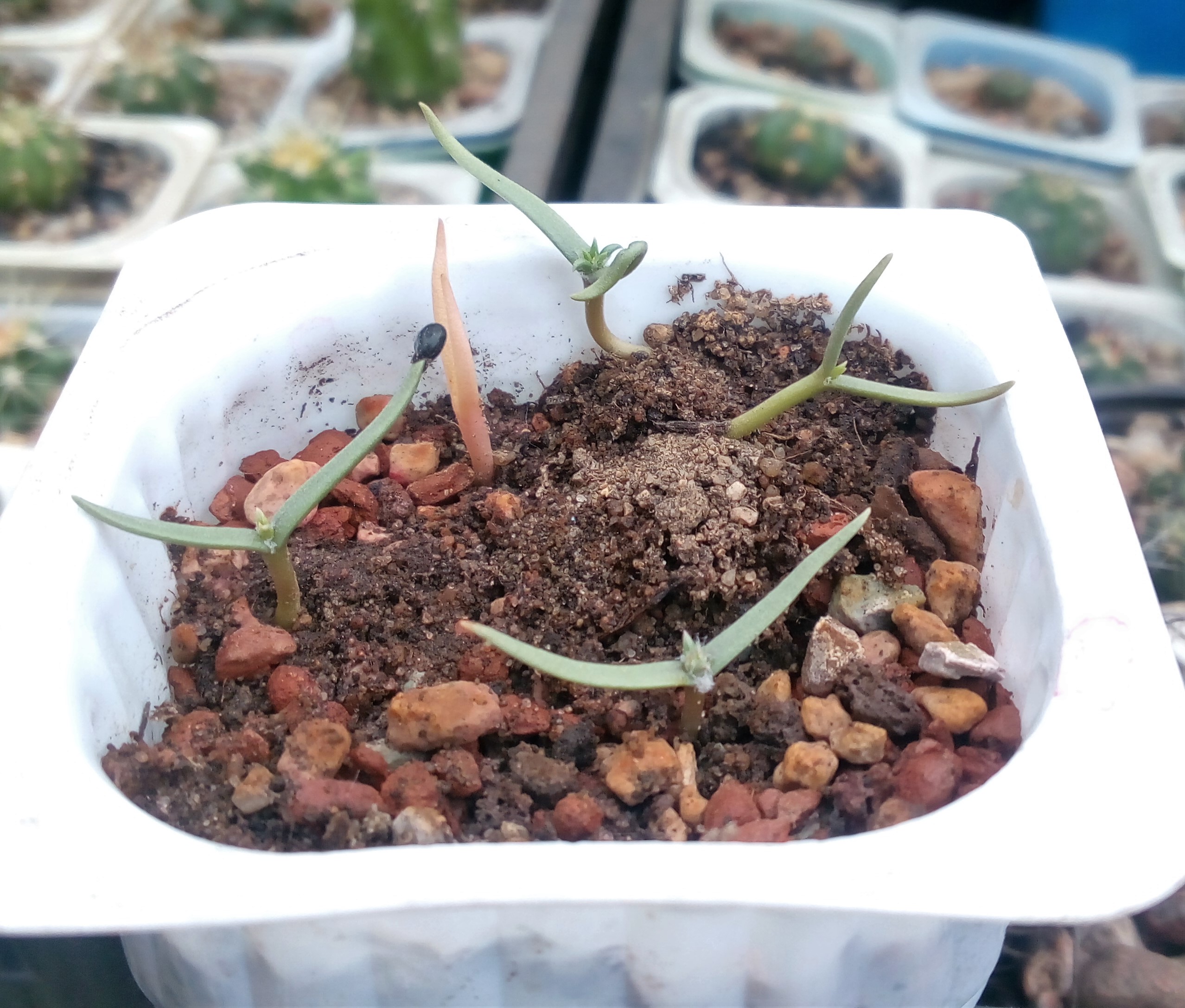 Да, с добавлением диатомита.И пока я жду ответа по монькам от знающих людей, покажу вам чутка других сеянцев мезов :) Просто так, потому что прикольные они :)Это они у Вас в лечузе сидят?)