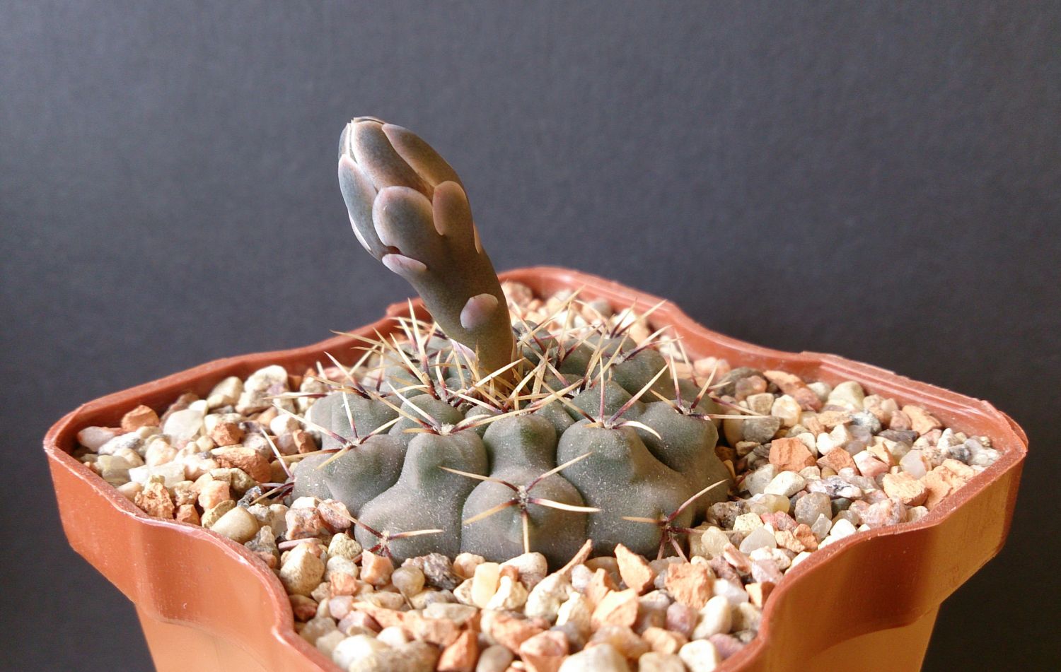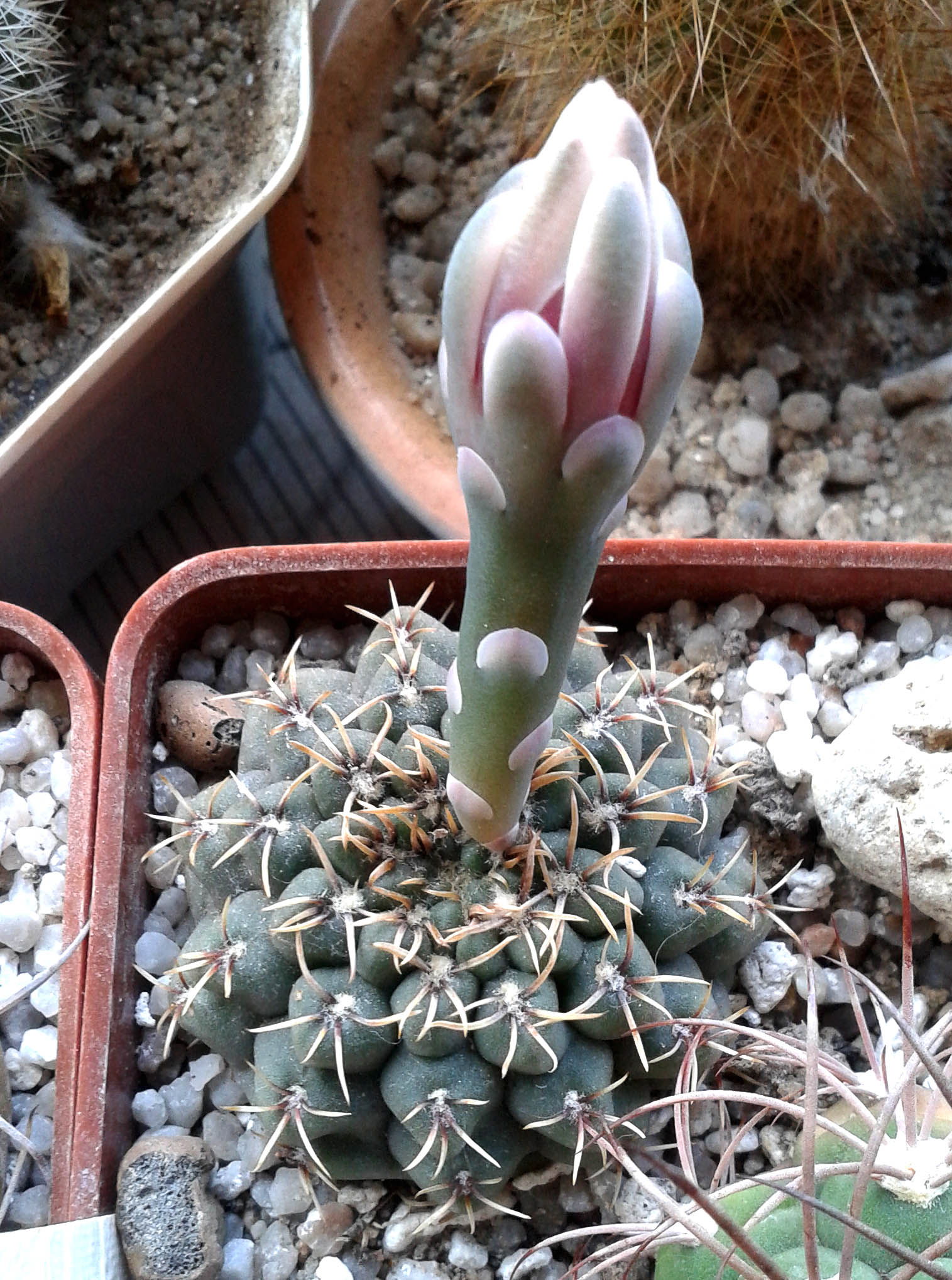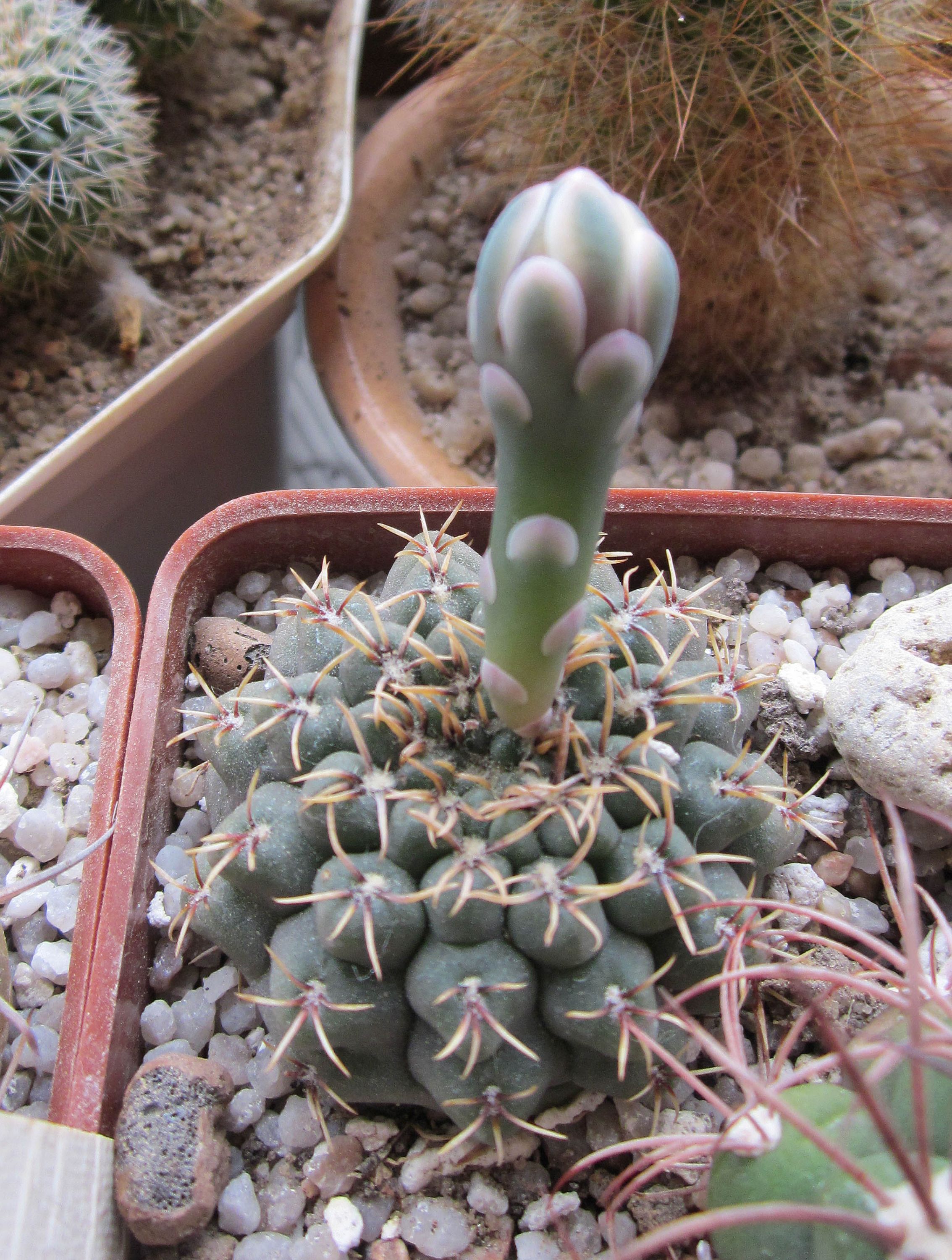 Gymnocalycium carminanthum машет бутоном Вячеславу КолесниковуРаз цветет, значит ему хорошо в новом доме. Прижился! *THUMBS UP*