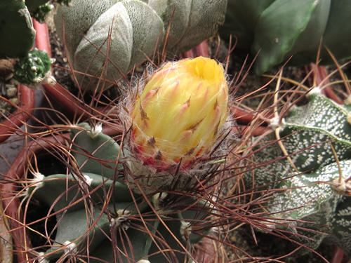 Интересно, как бутон пробирается через такой бурелом колючек :) :)Запросто - раздвигает и всё. Колючки у A. sewnile довольно упругие... Там, кстати, ещё один бутон за этим, чуть поменьше... :)