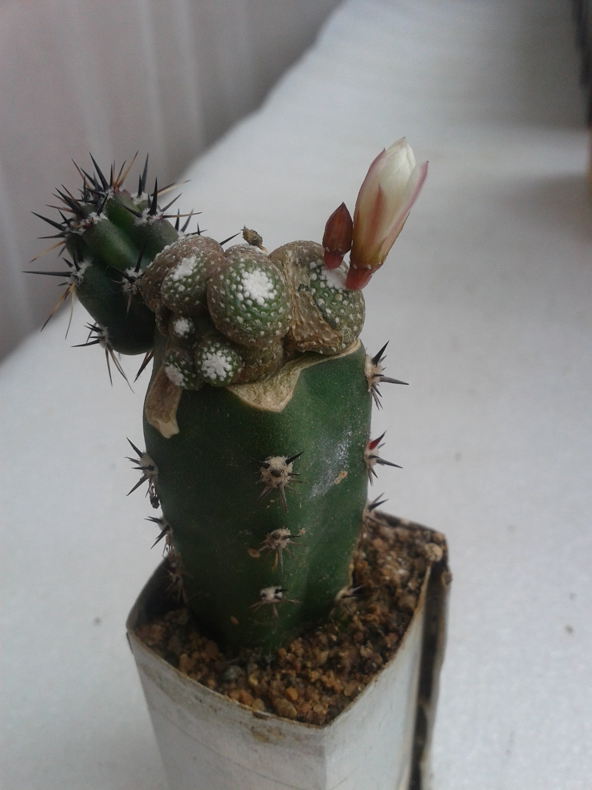 Eriocereus jusbertii. Подвой? Да нет, просто кактус, который собрался цвести!! (cactuslove)Больше месяца прошло... По-моему, ничего не изменилось :-x И не сушит, и не раскрывает, и не сбрасывает! А такие большие надежды подавал!!