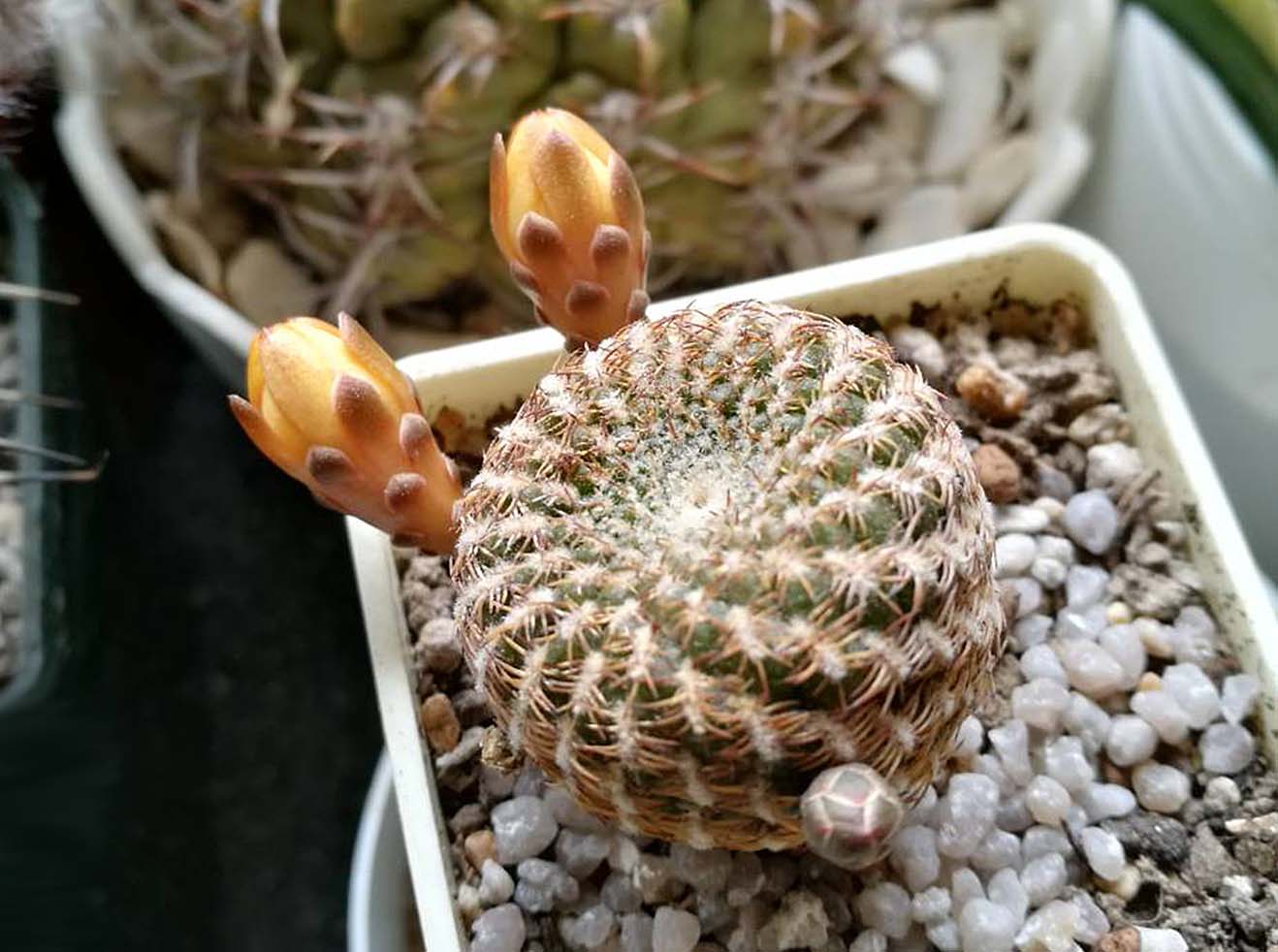 Ребята одна из моих маммилярий начала выпускать бутоны, а кактусы все мои стоят с сентября стоят сухие( без полива ) , такой вопрос может надо чуть-чуть полить мамашу с будущими цветочками или же пусть стоит сухая? Спасибо заранее за ваше внимание!Слава! Поливать точно не стоит. Днём, когда тепло, можно немножко опрыскать, совсем чуть-чуть...