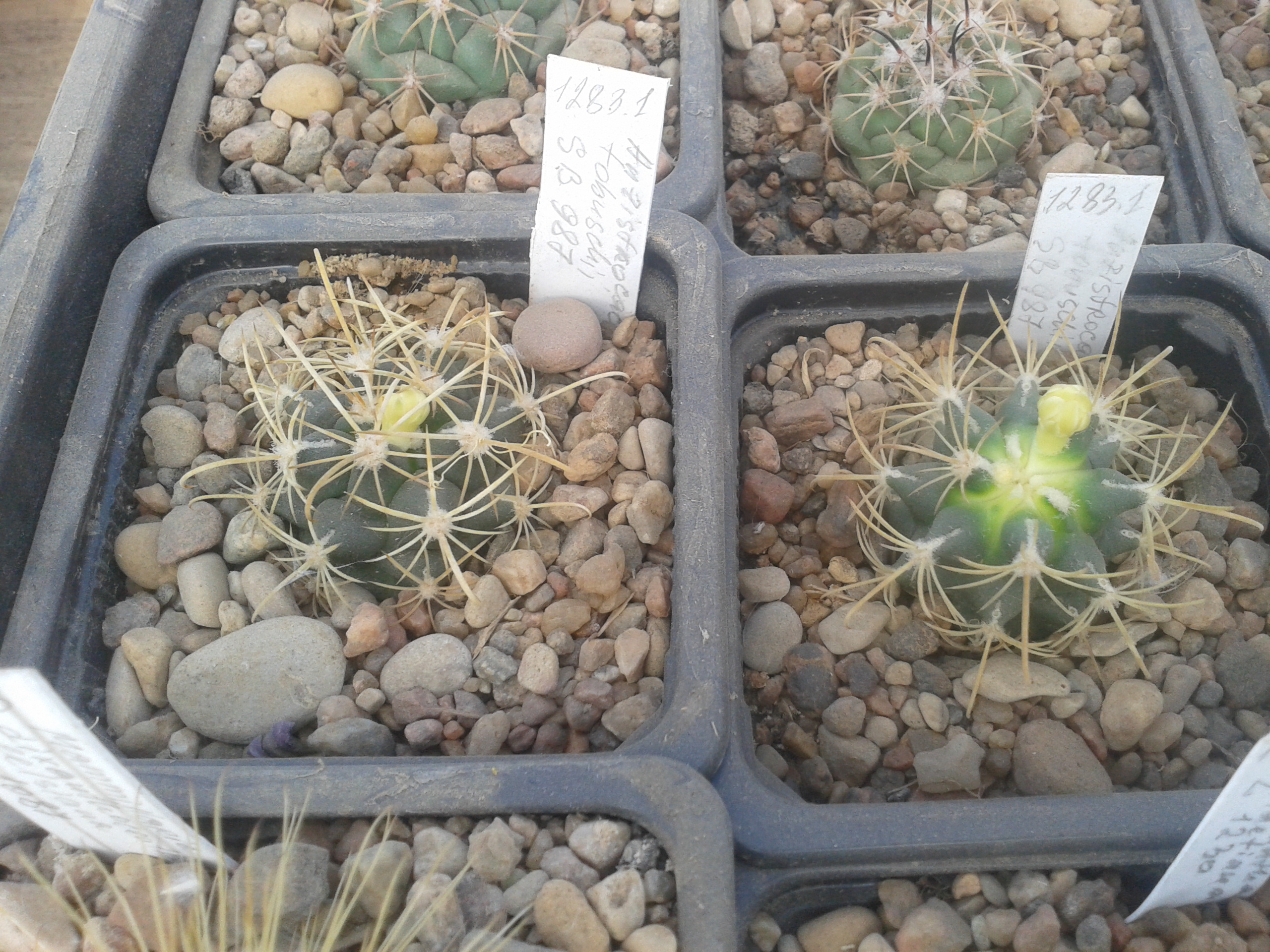 Turbinicarpus flaviflorus TCG 13001Turbinicarpus flaviflorus TCG 13001 сеянцы, все на тонкой ножке и с маленькой головкой где-то 6 мм и все цветут. Удивительно раннее цветение! *THUMBS UP*