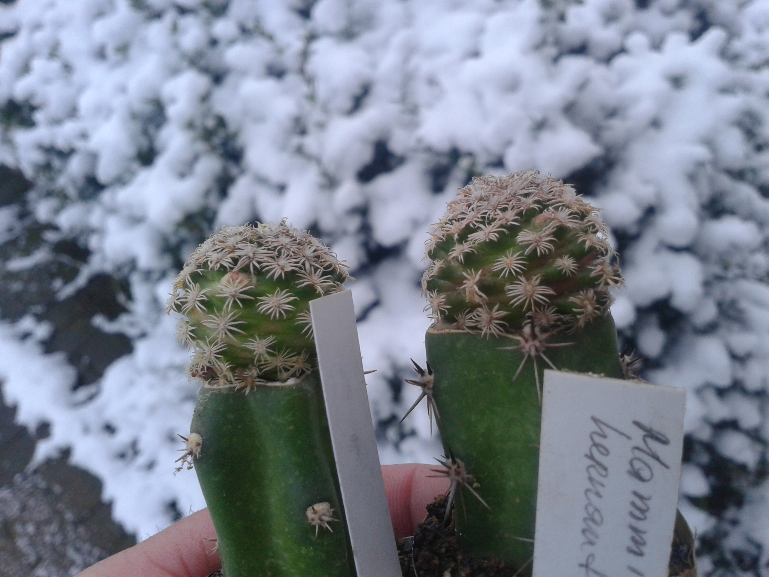 Слава , где зимует твоя М.эрнандези ( дома на окне ? ) и при какой температуре ? . Мои закопались в ровень с грунтом , твои смотрю налитые .Сказать, что налитые, так это далеко от истины, потому как давно, с осени не поливались. Зимуют на лоджии и в отличии от "сарайных" находятся в комфортных условиях. В самые сильные морозы температура опускалась до +6, а так обычно в пределах 15 градусов. Некоторые экземпляры санчес, привитые, оставил зимовать в сарае при температуре +2-+4, с понижениями и повышениями до +22 при прогреве. Вот такие разбежки температурные. В условиях, как на лоджии они обычно в январе начинают цвести, в сарае пока бутонизации не видать. Надо будет докопаться до них, может вообще уже "копытца" откинули.
