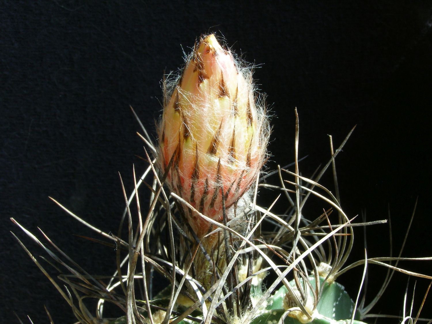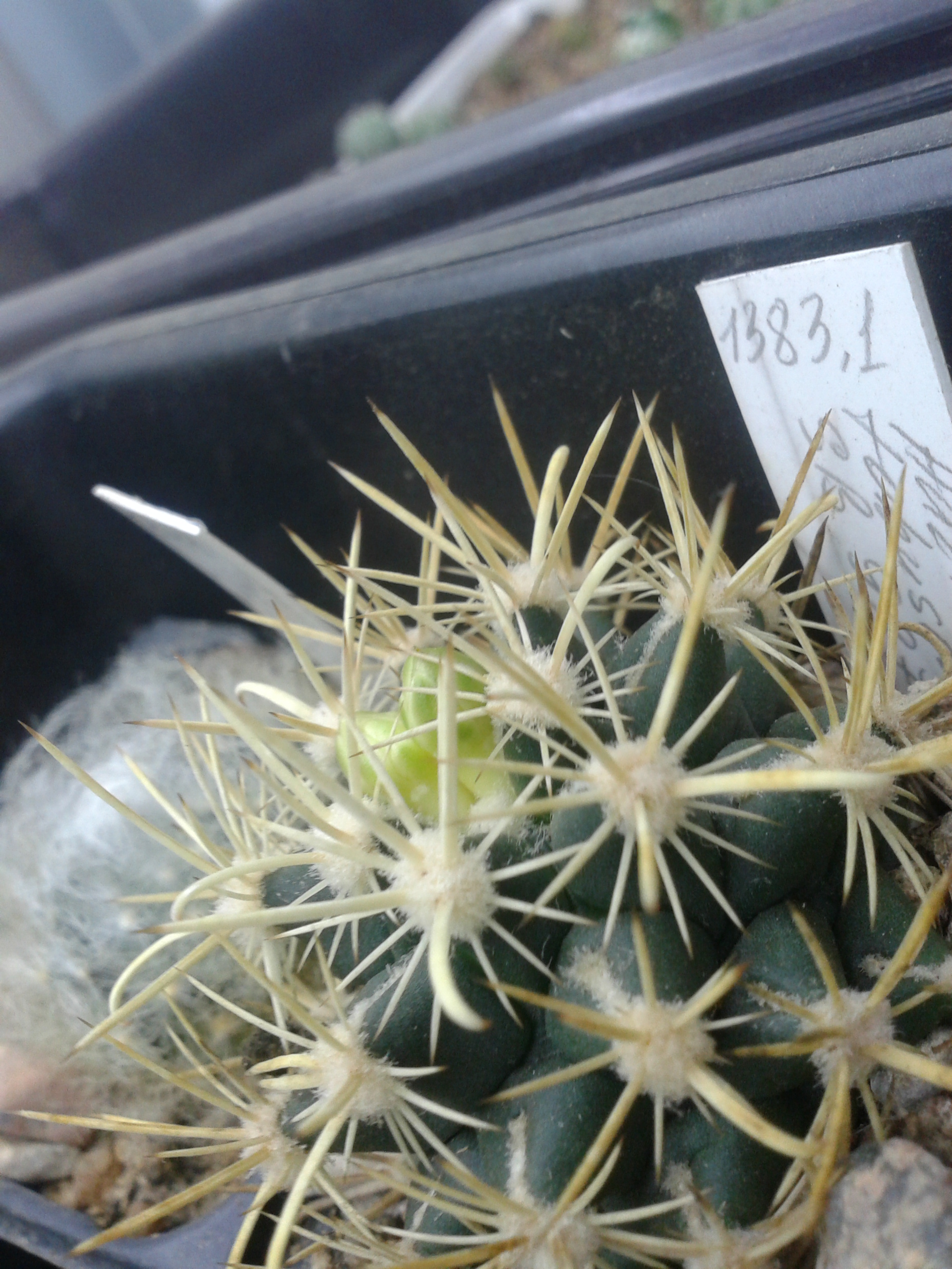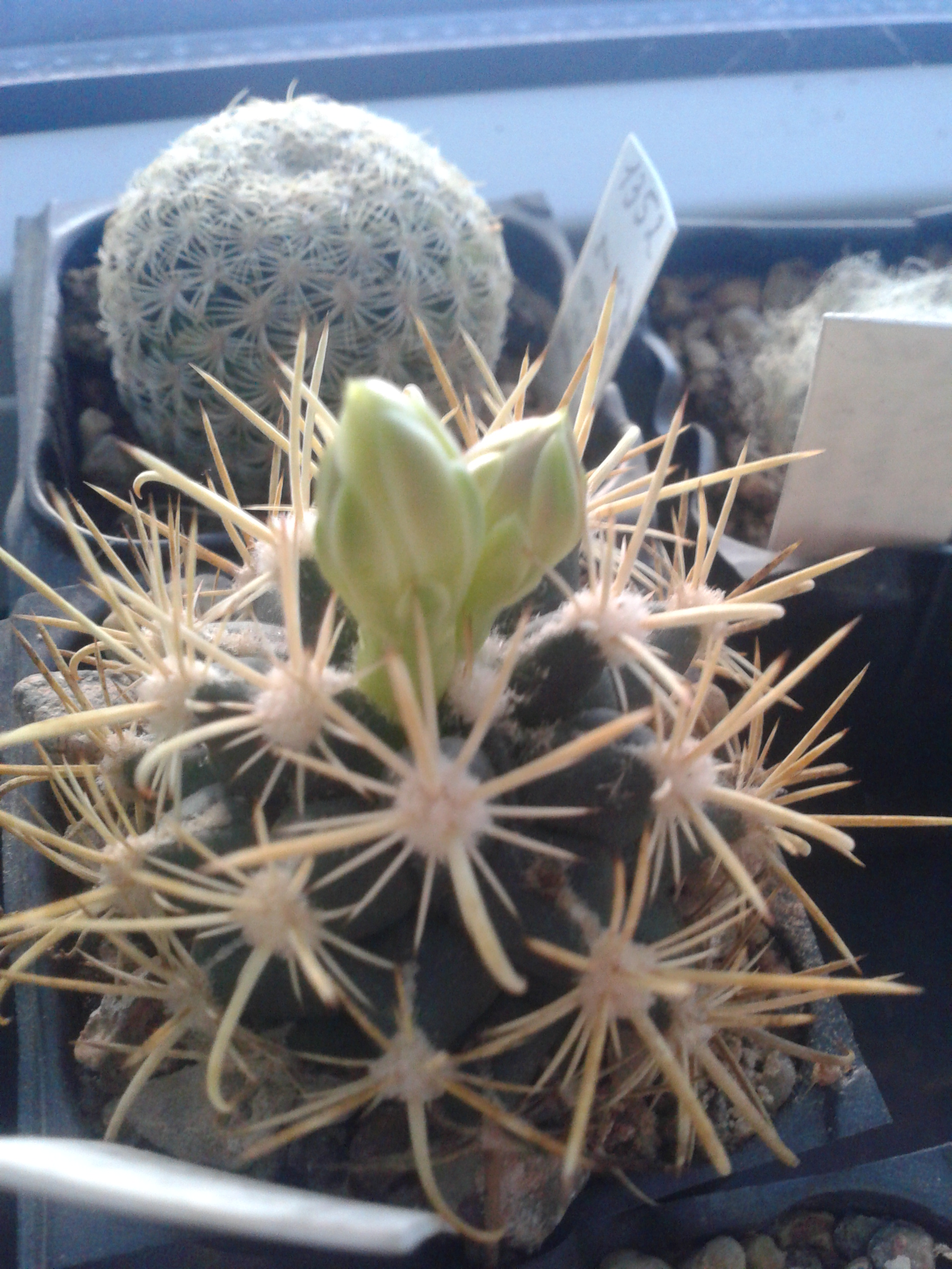 У второго сеянца, такая же колючка черная но не такая мощная. Вячеслав, я выкладывал фото обоих в теме Gymnocalycium knolii, вставил бы ссылку по клику да не умею.Совсем не ожидал в этом году, пока конечно еще почти бутон, но все же. Gymnocalycium knolii. Сеянец Надежды,полученный в том году.Ух ты какая чёрная колючка, загляденье! *THUMBS UP* Слава, я тоже такой гимнокалициум хочу. У него полевой номер есть? :/