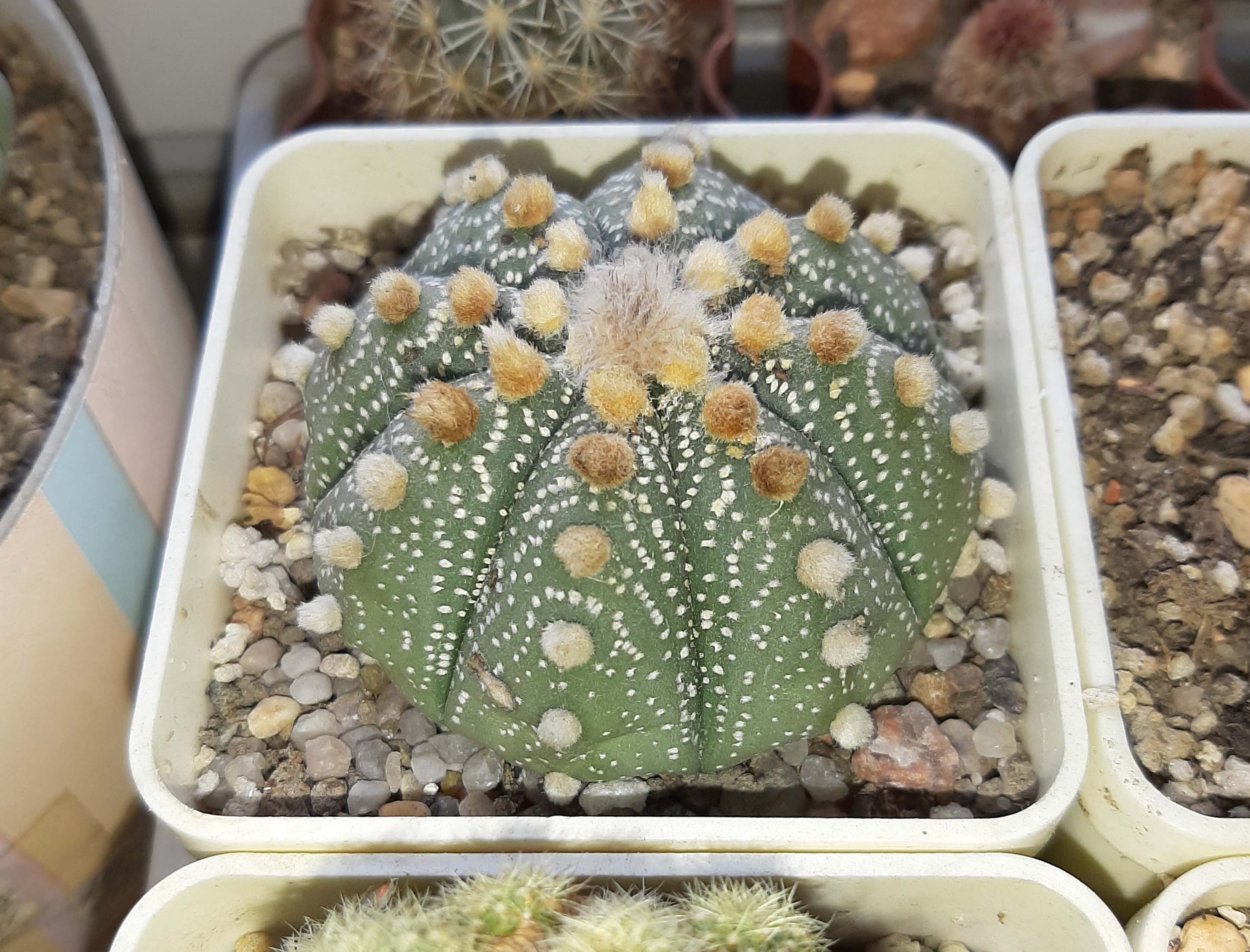 Не факт, что гибрид. У меня был экземпляр из природных семян Мезагардена один в один как этот))Astrophytum asterias:Не, это не астериас, это Супер Кабуто какой то, гибрид однозначно.