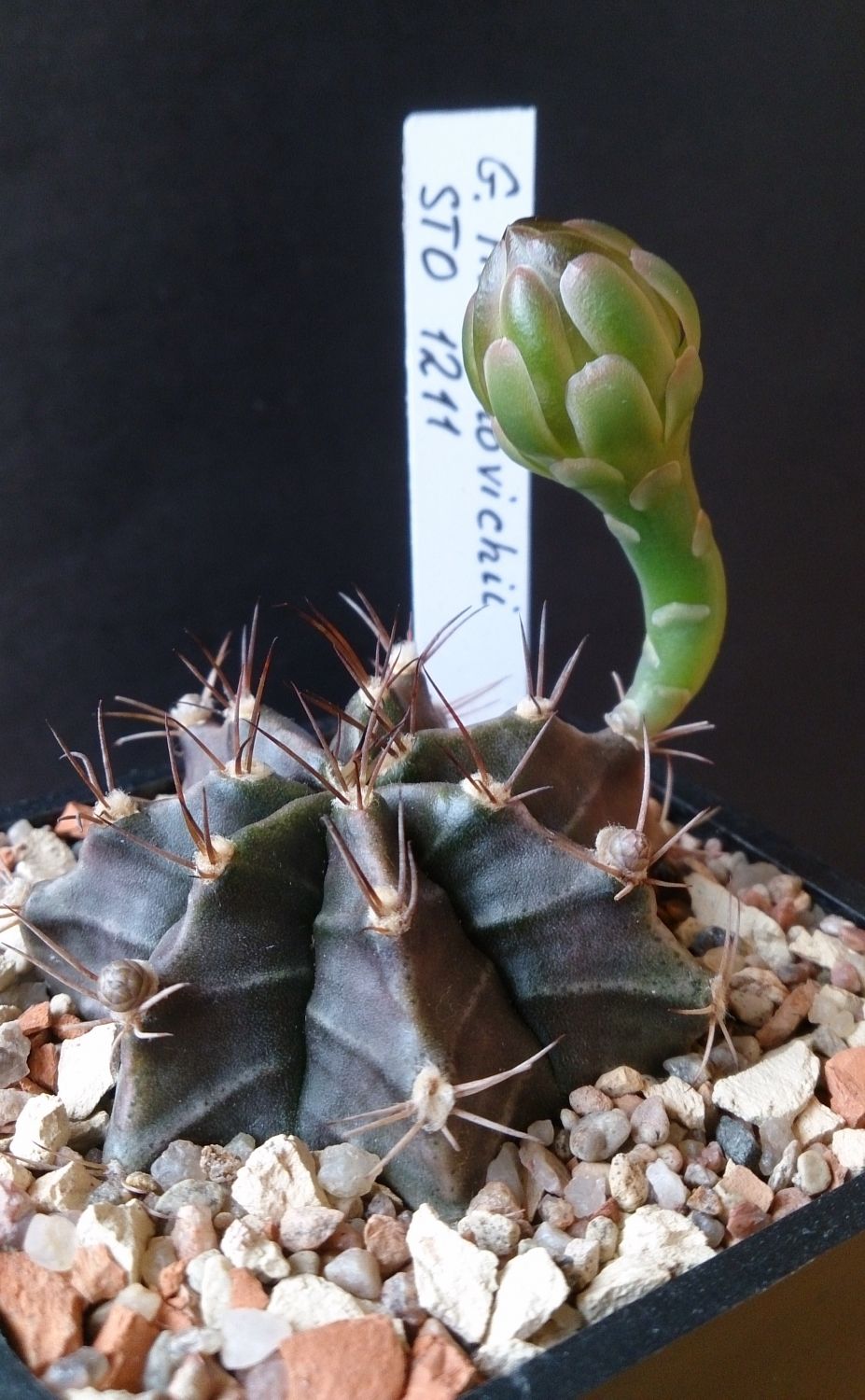 Совсем не ожидал в этом году, пока конечно еще почти бутон, но все же. Gymnocalycium knolii. Сеянец Надежды,полученный в том году.Ух ты какая чёрная колючка, загляденье! *THUMBS UP* Слава, я тоже такой гимнокалициум хочу. У него полевой номер есть? :/