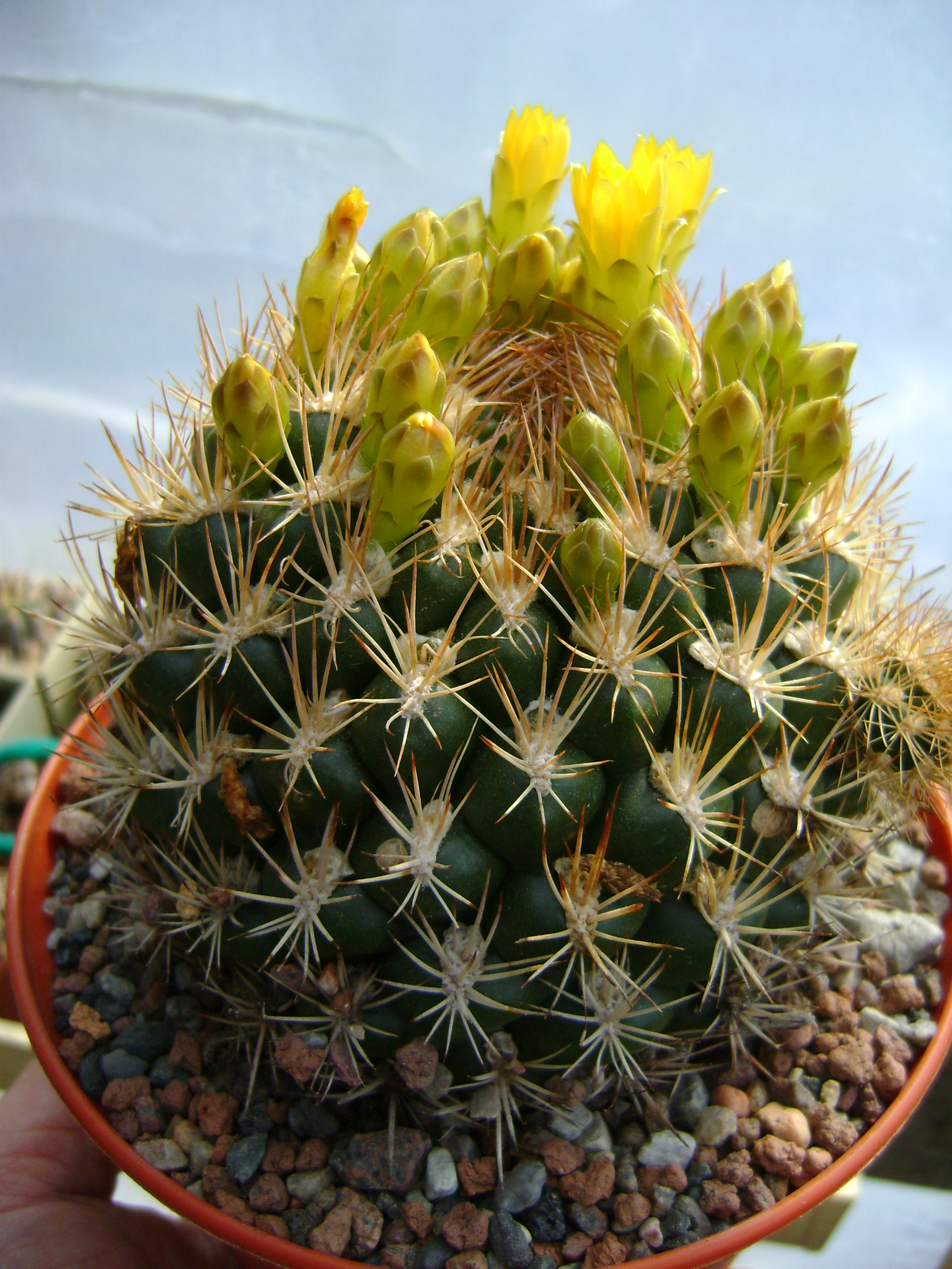 Notocactus uebelmannianusХорошо что не много, в рюкзаке переместить можено. А так красота!!!!!