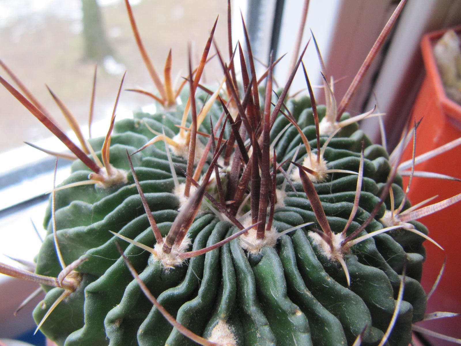 колючки как раз очень ершистые, и уж особенно если сравнивать с кляйнианумом) *STOP* а темный стебель у них при хорошем солнце, у Димы на балконе запросто стал зеленым) вполне типичный)