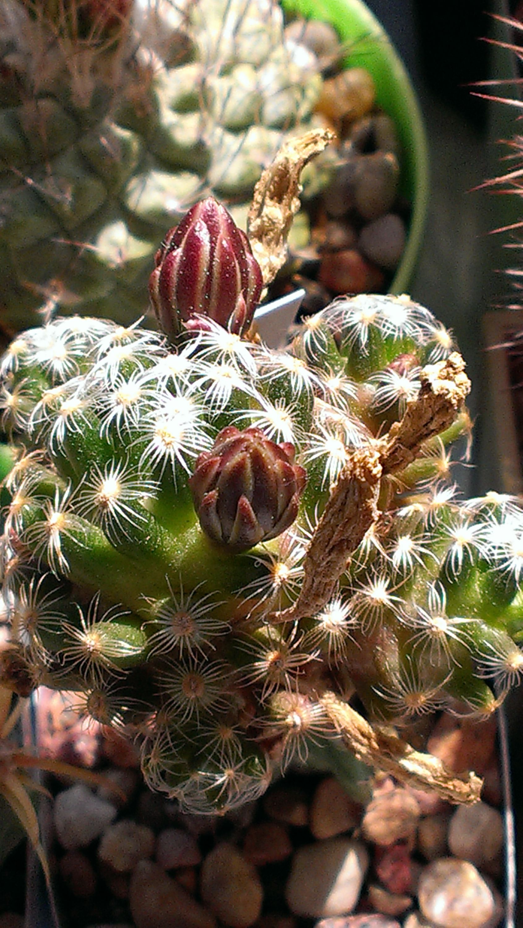Оторвал ягодку?Mammillaria giselae.Сначала не мог решить,в какой теме должна быть эта фотка.Тут и бутоны,и ягоды,и цветок.Но бутонов оказалось больше